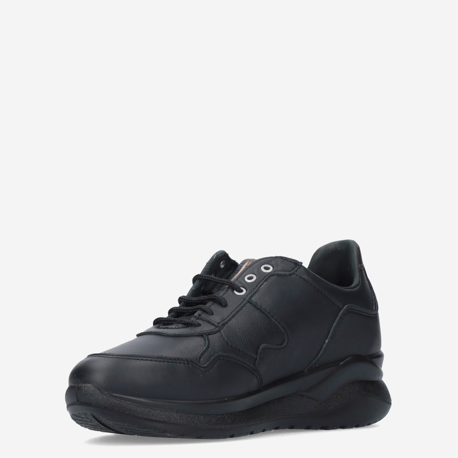 Deze zwarte Active 6700 damesschoen van Grisport is gemaakt van verschillende leersoorten en is voorzien van een comfortabele profielzool. De wandelsneaker is waterafstotend en geschikt voor korte wandelingen.