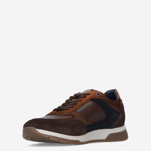Deze donker bruine Afelcado herenschoen van Fluchos is gemaakt van hoogwaardig leer in combinatie met textiel. De stijlvolle sneaker is voorzien van verschillende overlays.