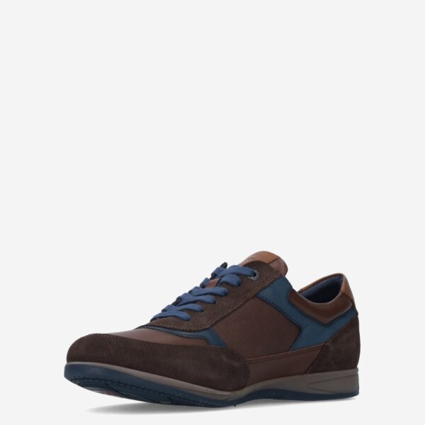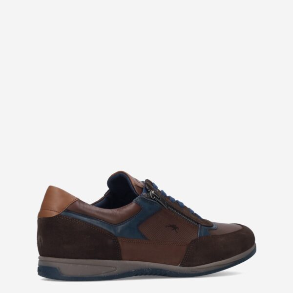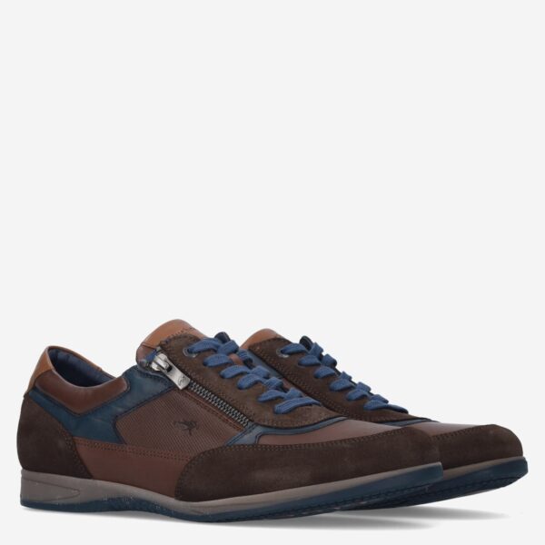 Deze donker bruin met blauwe Afelpado herenschoen van Fluchos is gemaakt van hoogwaardig leer. De nette sneaker is voorzien van zowel een rits- als vetersluiting voor een gemakkelijke instap.