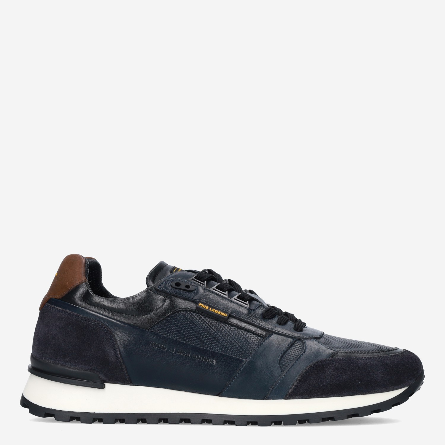 Deze donker blauwe Airlander herensneaker van PME Legend is gemaakt van leer in combinatie met synthetische materialen. De nette sneaker is voorzien van verschillende overlays.