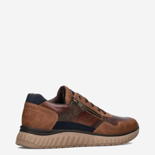 Deze bruine Auxerre herensneaker van Rieker is gemaakt van leer in combinatie met textiel en synthetische materialen. De sneaker is voorzien van zowel een rits- als vetersluiting voor een gemakkelijke instap.