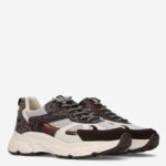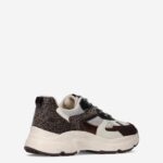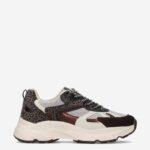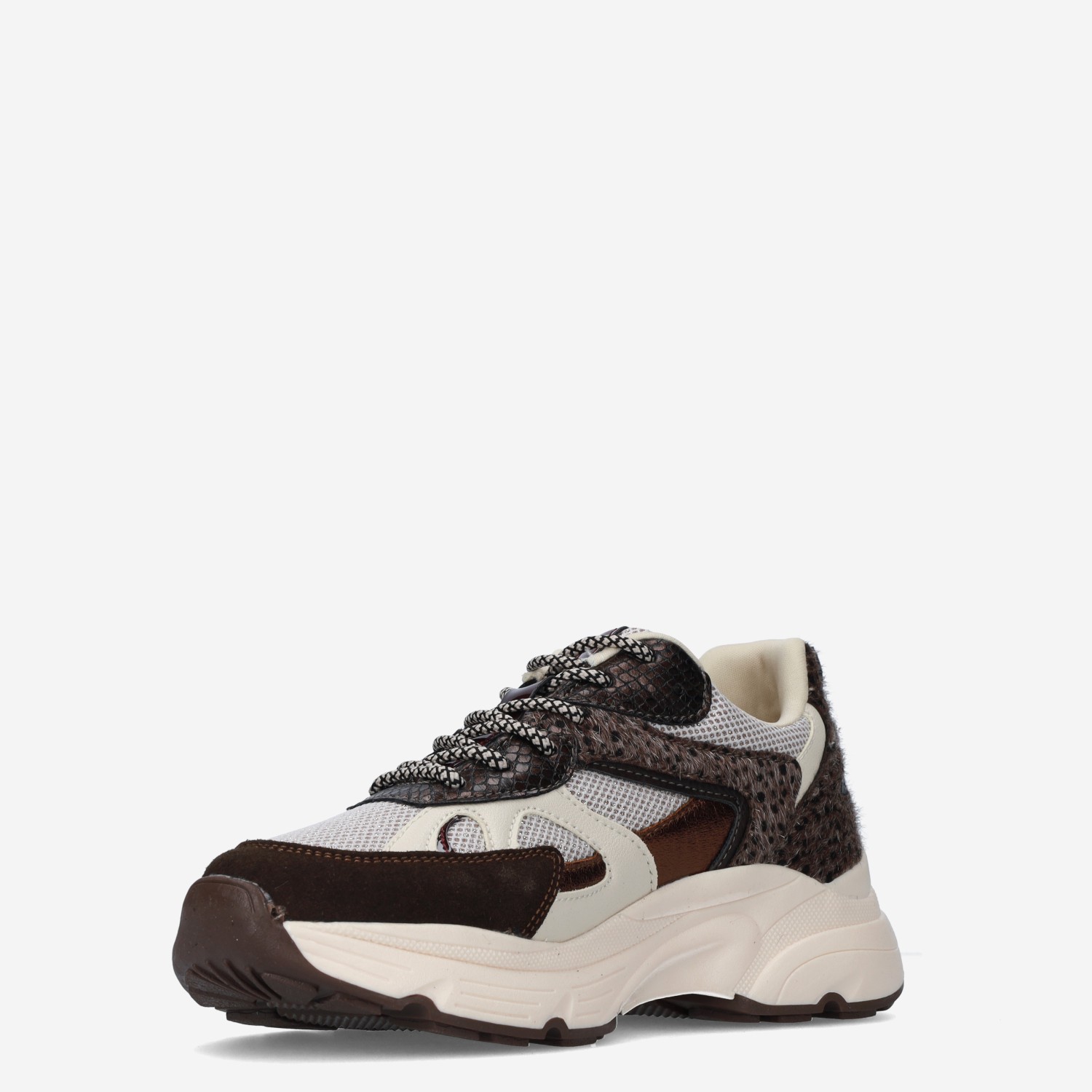 Deze beige multicoloured Ayoki damessneaker van Posh is gemaakt van imitatieleer in combinatie met synthetische materialen. De sneaker is voorzien van metallic overlays, een panterprint en mesh accenten.