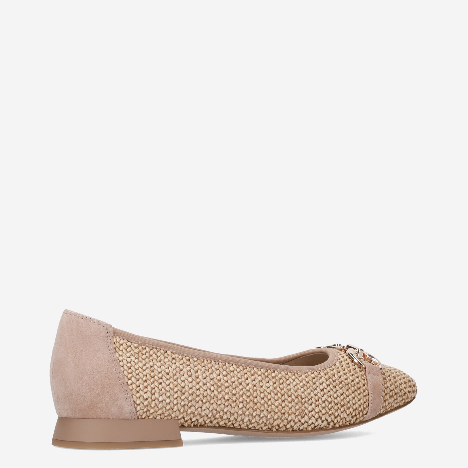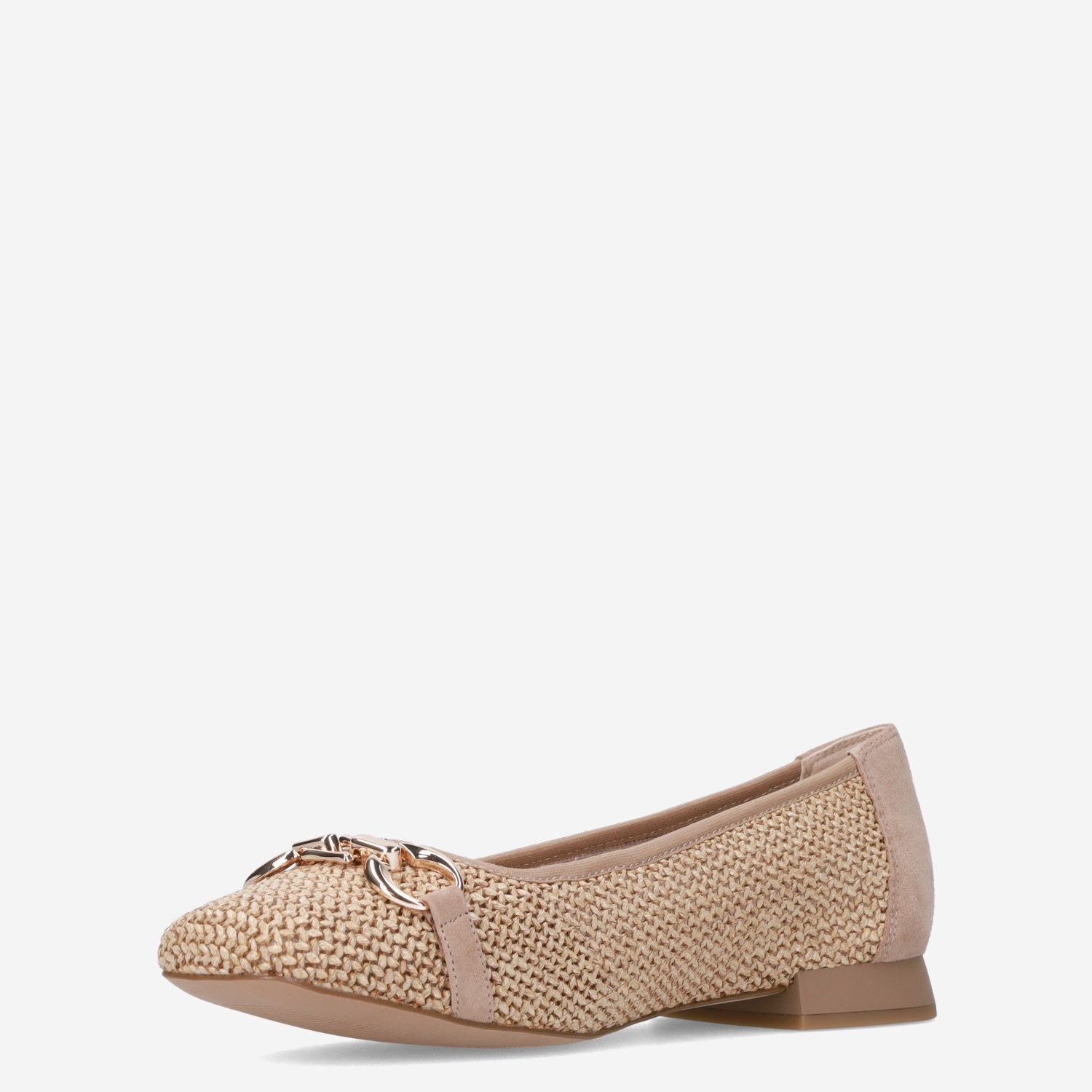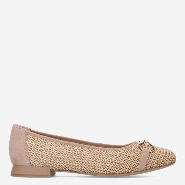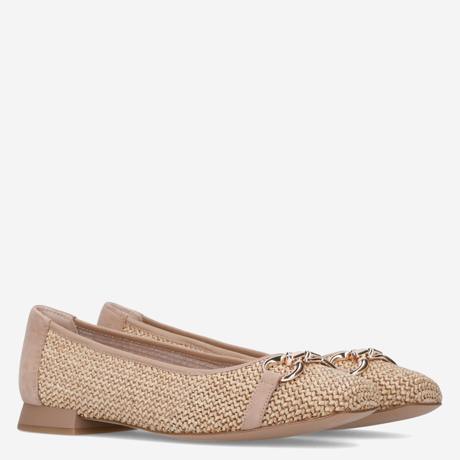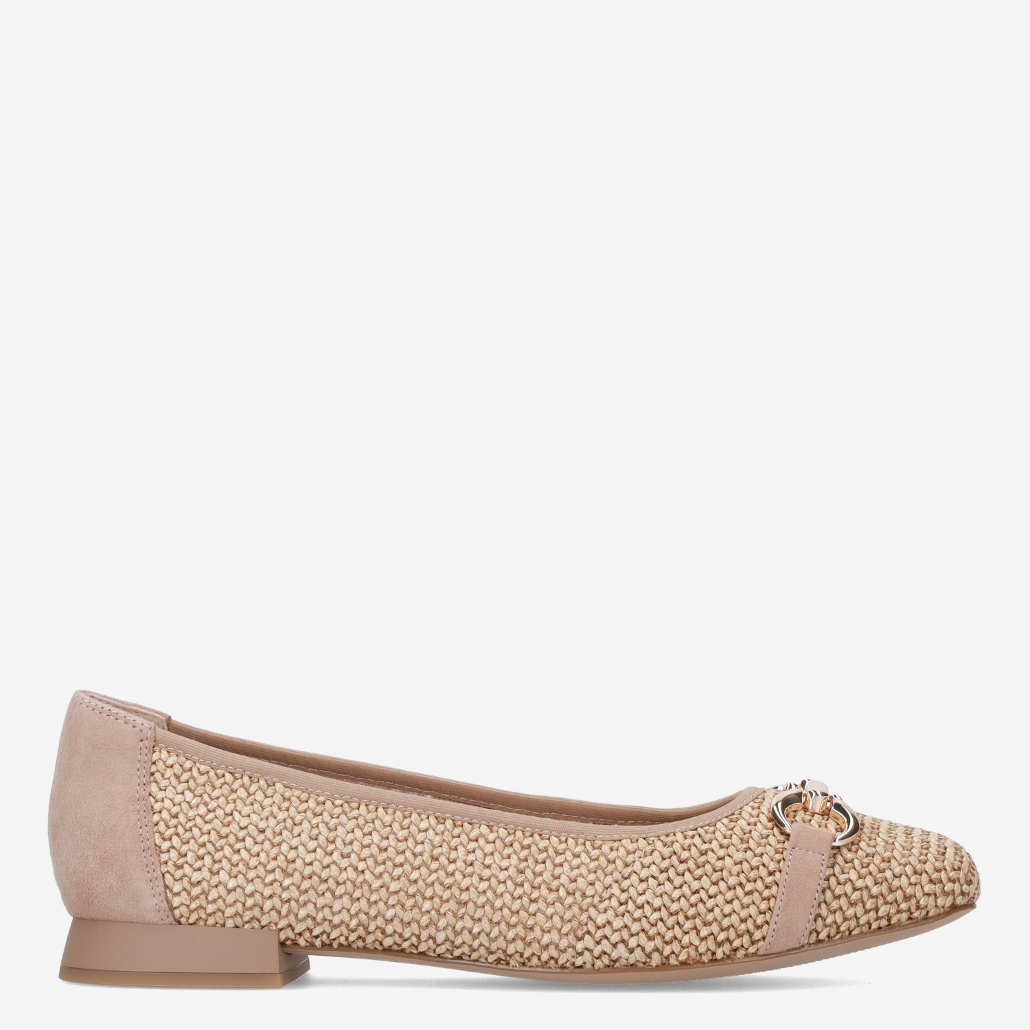 Deze beige Ballerina van Caprice is gemaakt van een combinatie van leer en synthetische materialen. Deze nette ballerina heeft een geweven patroon en is voorzien van een gouden gesp.