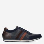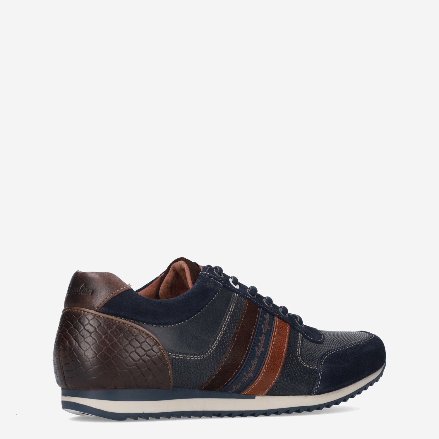 Deze donker blauw met bruine Camaro herenschoen van Australian is gemaakt van leer in combinatie met synthetische materialen. De sneaker heeft een nette uitstraling en verschillende overlays.