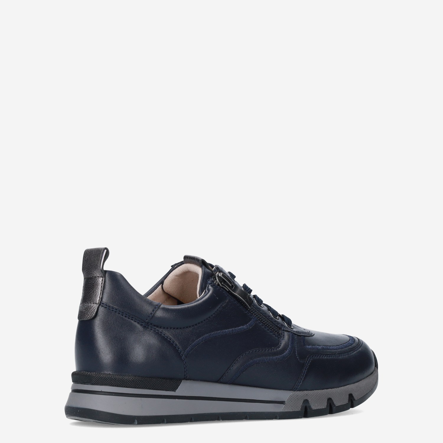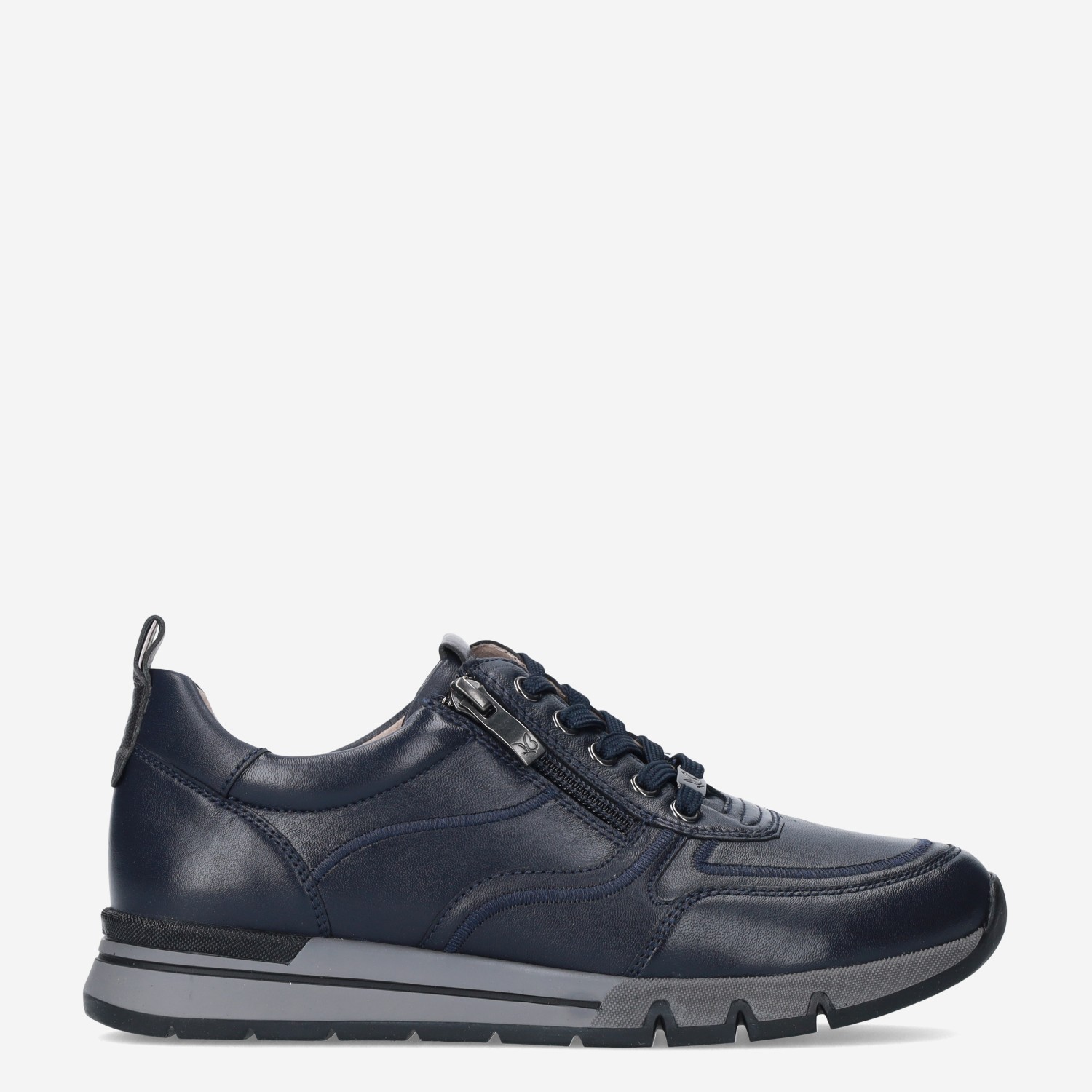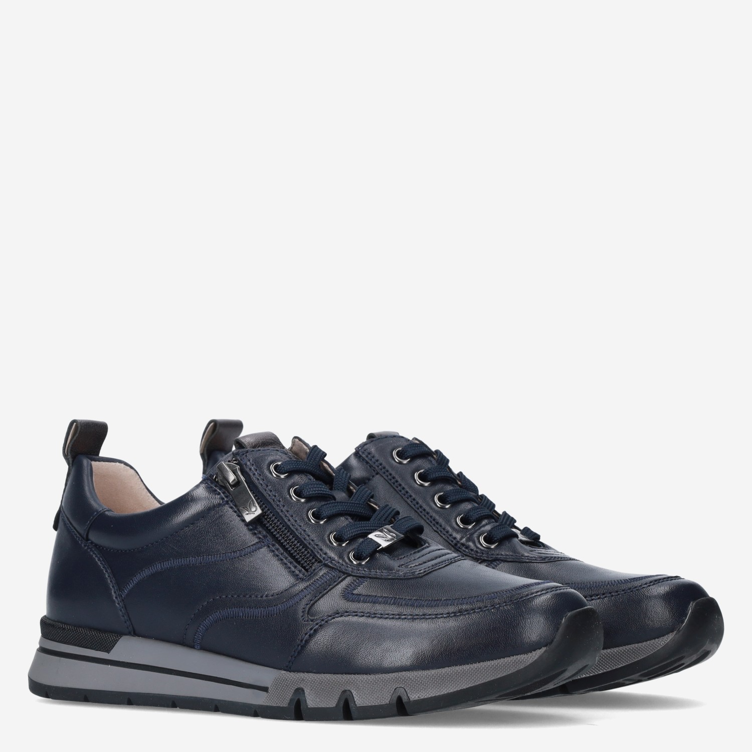 Deze donker blauwe Combi O damessneaker van Caprice is gemaakt van hoogwaardig leer in combinatie met metallic accenten. De schoen is voorzien van zowel een rits- als vetersluiting.