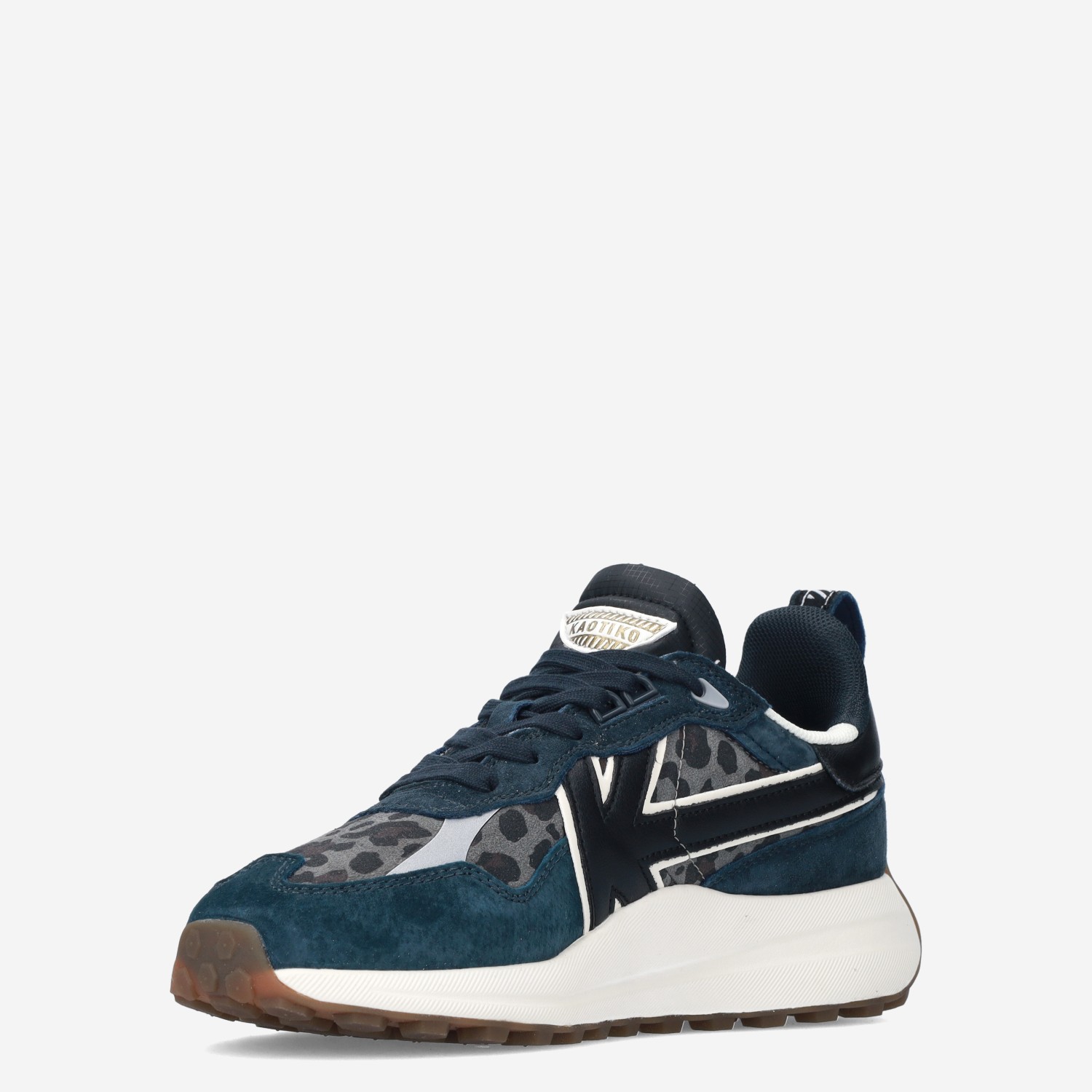 Deze blauw met grijze multicoloured Detroit Glam damessneaker van Kaotiko is gemaakt van leer in combinatie met textiel. De sportieve sneaker is voorzien van een fijne loopzool die voor voldoende demping zorgt.