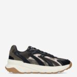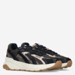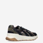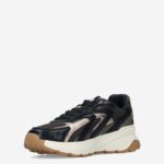 Deze donker groen met zwarte metallic Dora damessneaker van Maruti is gemaakt van leer in combinatie met mesh.