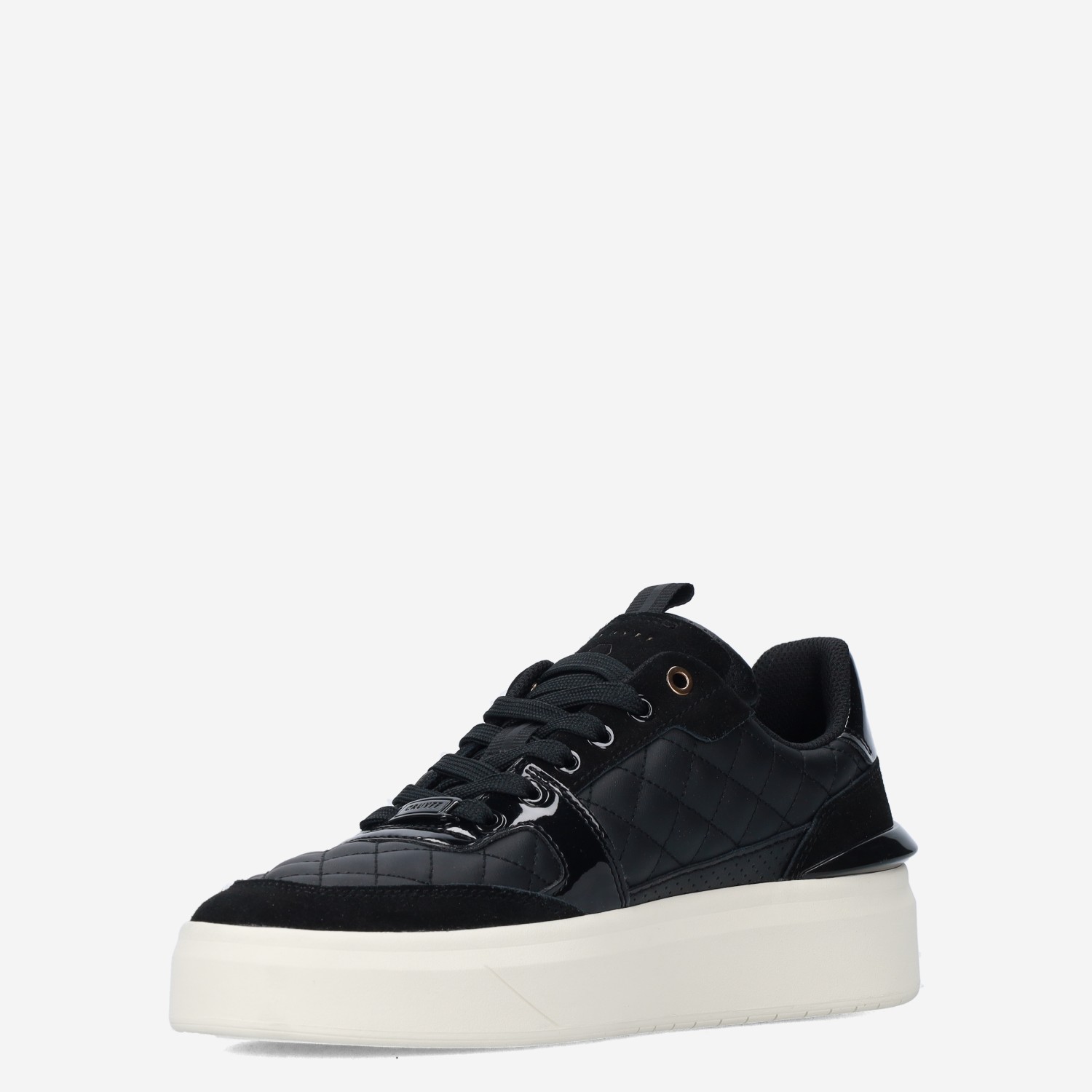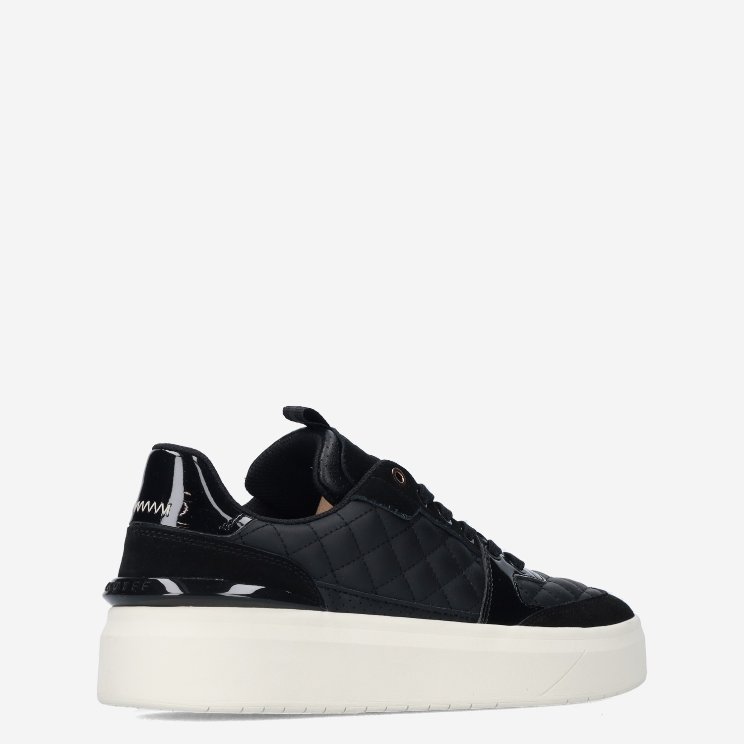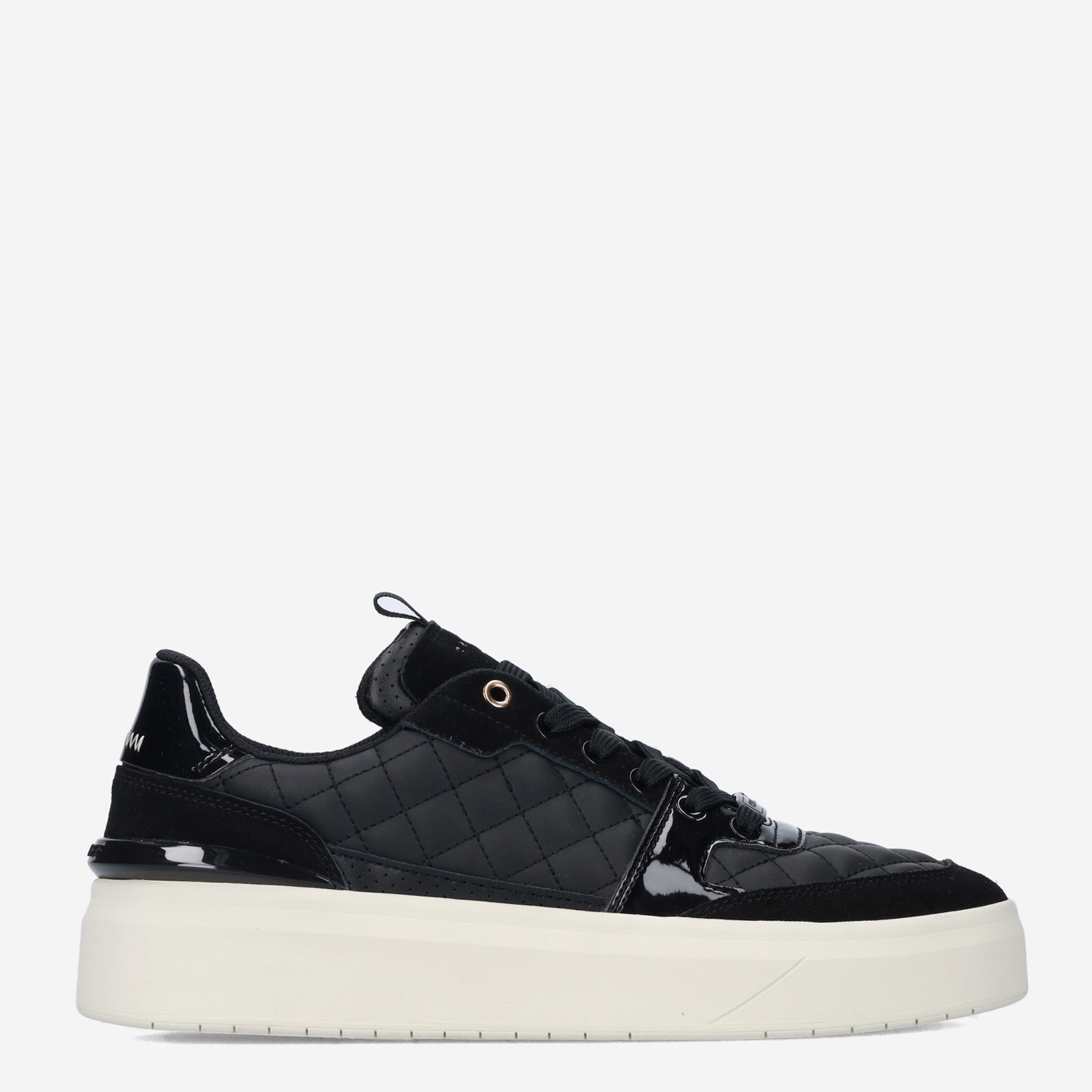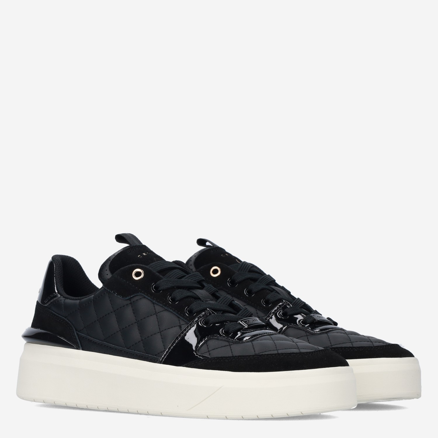 Deze zwarte Endorsed Tennis damessneaker van Cruyff is gemaakt van verschillende leersoorten in combinatie met synthetische materialen.