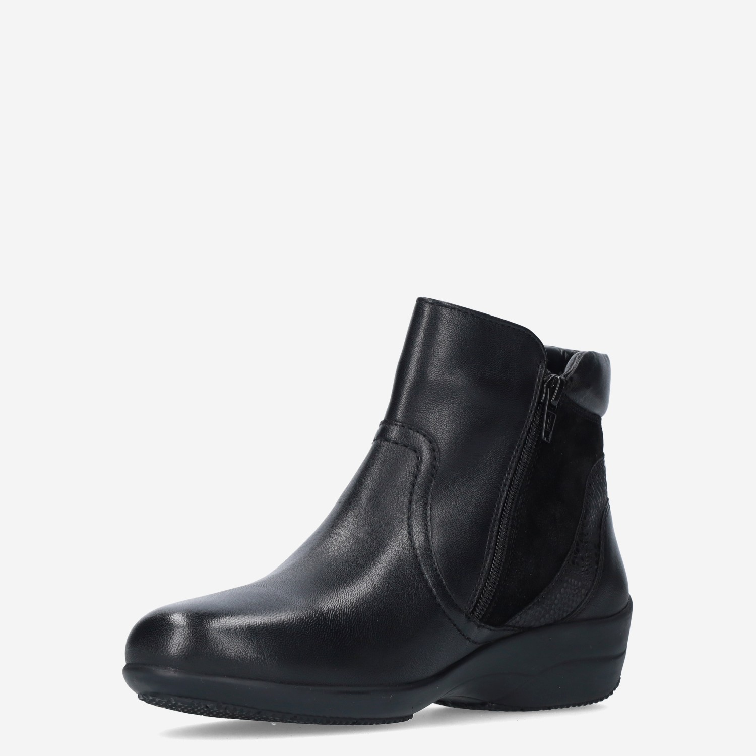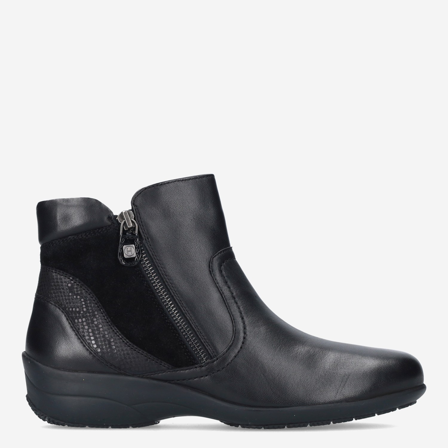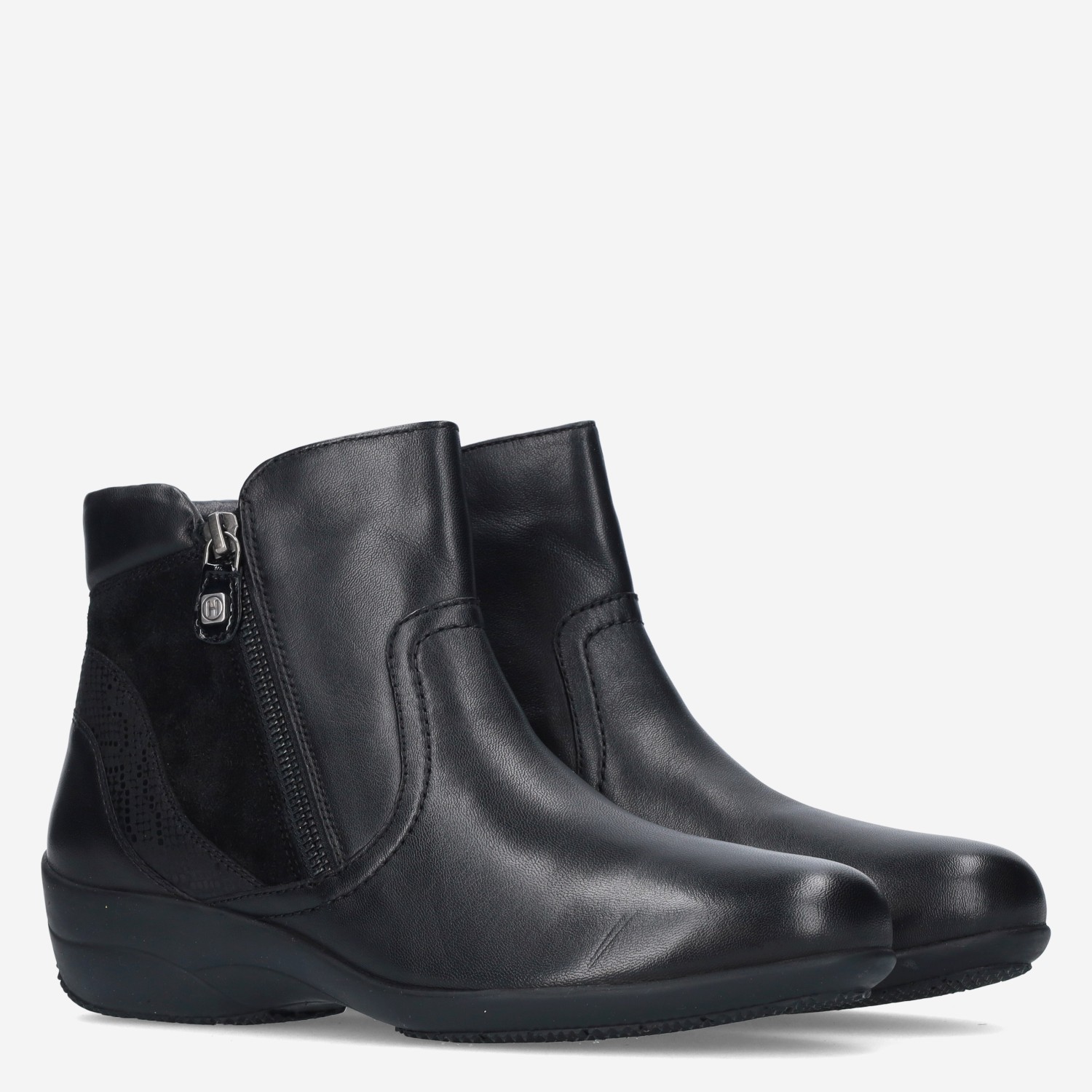 Deze zwarte Enkellaars H Combi damessneaker van Helioform is gemaakt van leer in combinatie met synthetische materialen. De schoen is voorzien van zowel een dubbele ritssluiting voor een gemakkelijke instap.