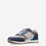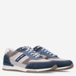 Deze blauw met grijze Filmon herenschoen van Australian is gemaakt van verschillende hoogwaardige leersoorten in combinatie met synthetische materialen. De sneaker heeft een nette uitstraling en verschillende sportieve overlays.