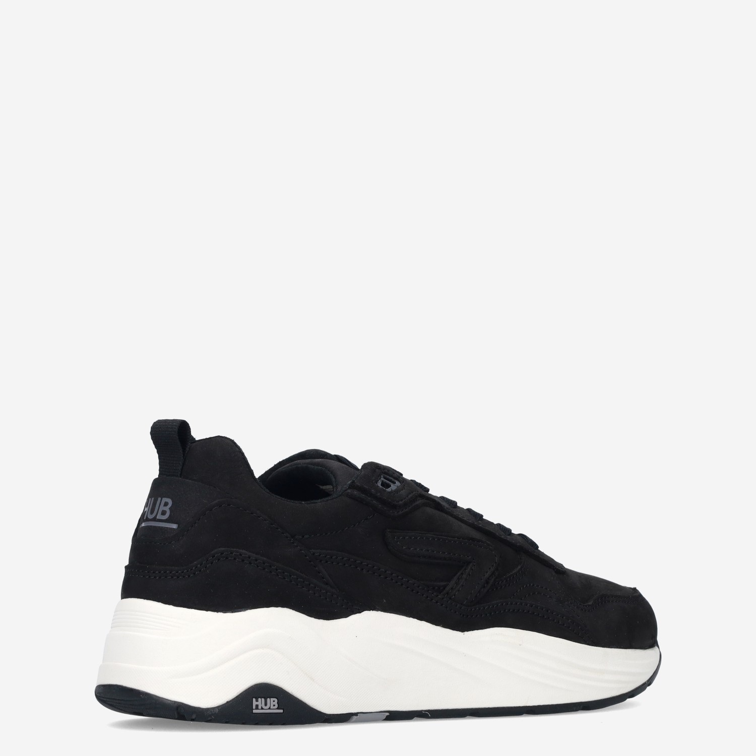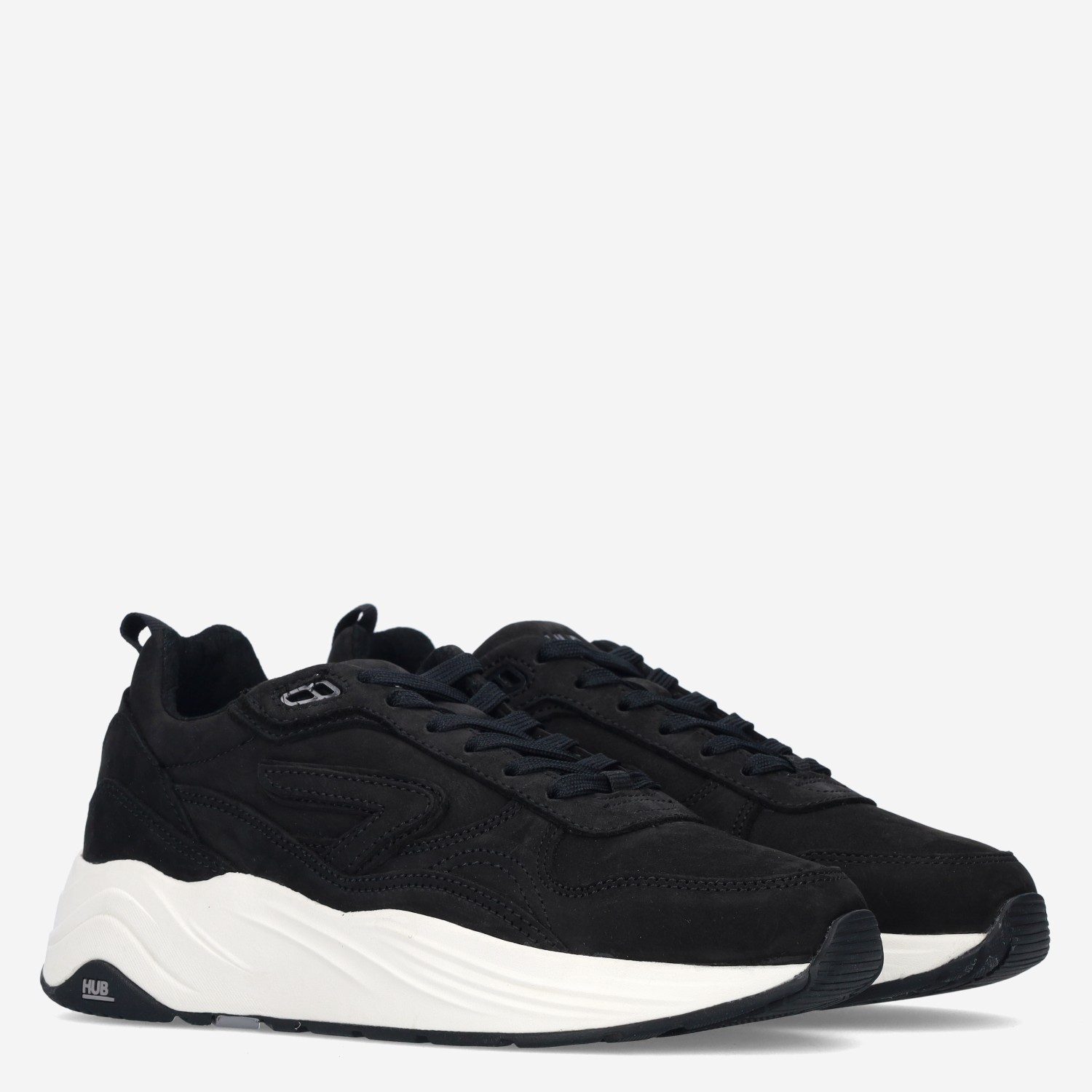 Deze zwarte Glide damessneaker van HUB is gemaakt van verschillende leersoorten in combinatie met textiel. De sportieve sneaker heeft een stevige wit met zwarte loopzool.
