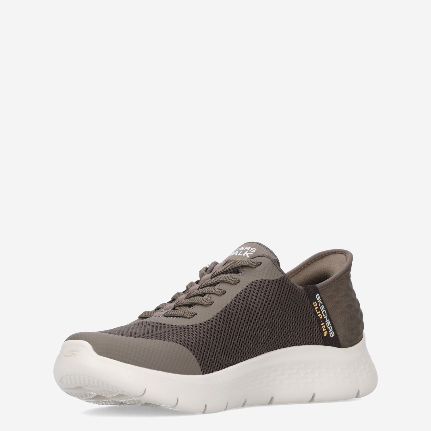 Deze bruine Go Walk Flex Slip-In herensneaker van Skechers is gemaakt van textiel in combinatie met synthetische materialen. De instapper is voorzien van een verstevigd hielstuk voor extra comfort.