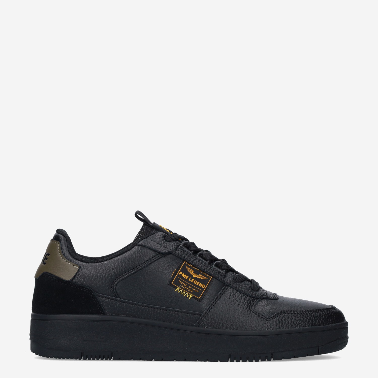 Deze zwarte Gobbler Smoke herensneaker van PME Legend is gemaakt van leer in combinatie met synthetische materialen.