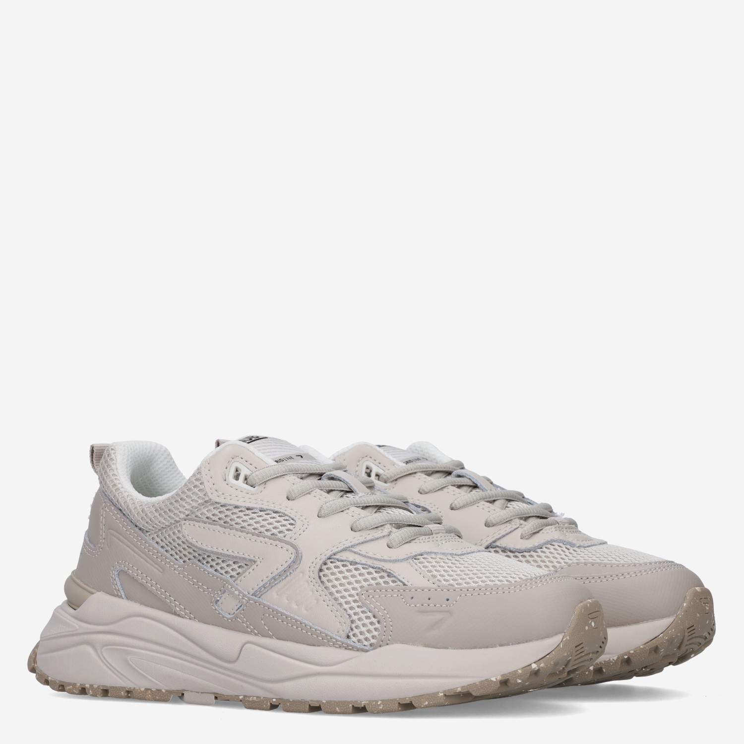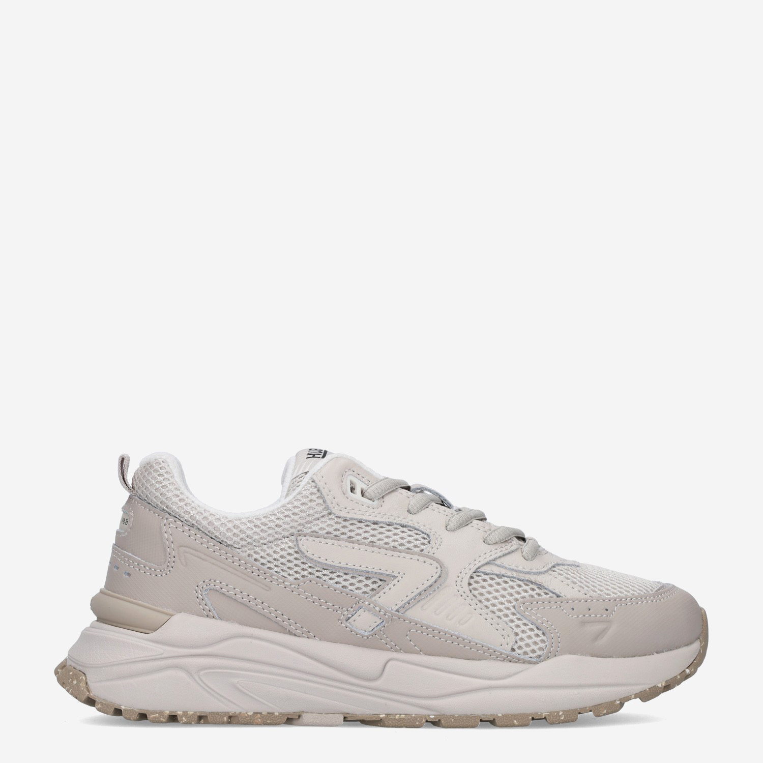 Deze offwhite, beige Grid L23 damessneaker van HUB is gemaakt van leer in combinatie met textiel en synthetische materialen. De sportieve sneaker heeft verschillende overlays en een loopzool met gespikkeld design.