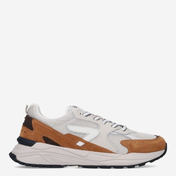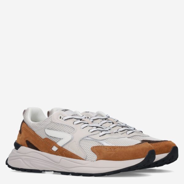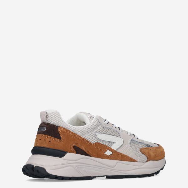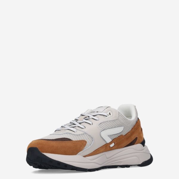 Deze beige met bruine Grid M37 herensneaker van HUB is gemaakt van leer in combinatie met textiel en synthetische materialen. De sportieve sneaker is voorzien van verschillende overlays waaronder mesh.