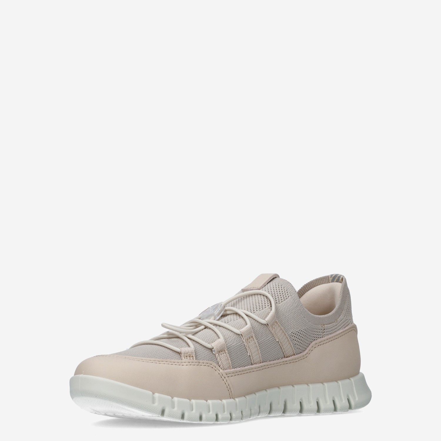 Deze beige Gruuv lite W damessneaker van ECCO is gemaakt van leer in combinatie met technisch textiel. Deze sneaker is een lichter model binnen de Gruuv-familie en heeft een dynamische rubberen zool die niet alleen zorgt voor grip maar ook je voeten ondersteunt bij elke stap. Je sluit de sneaker door middel van een trekkoord.