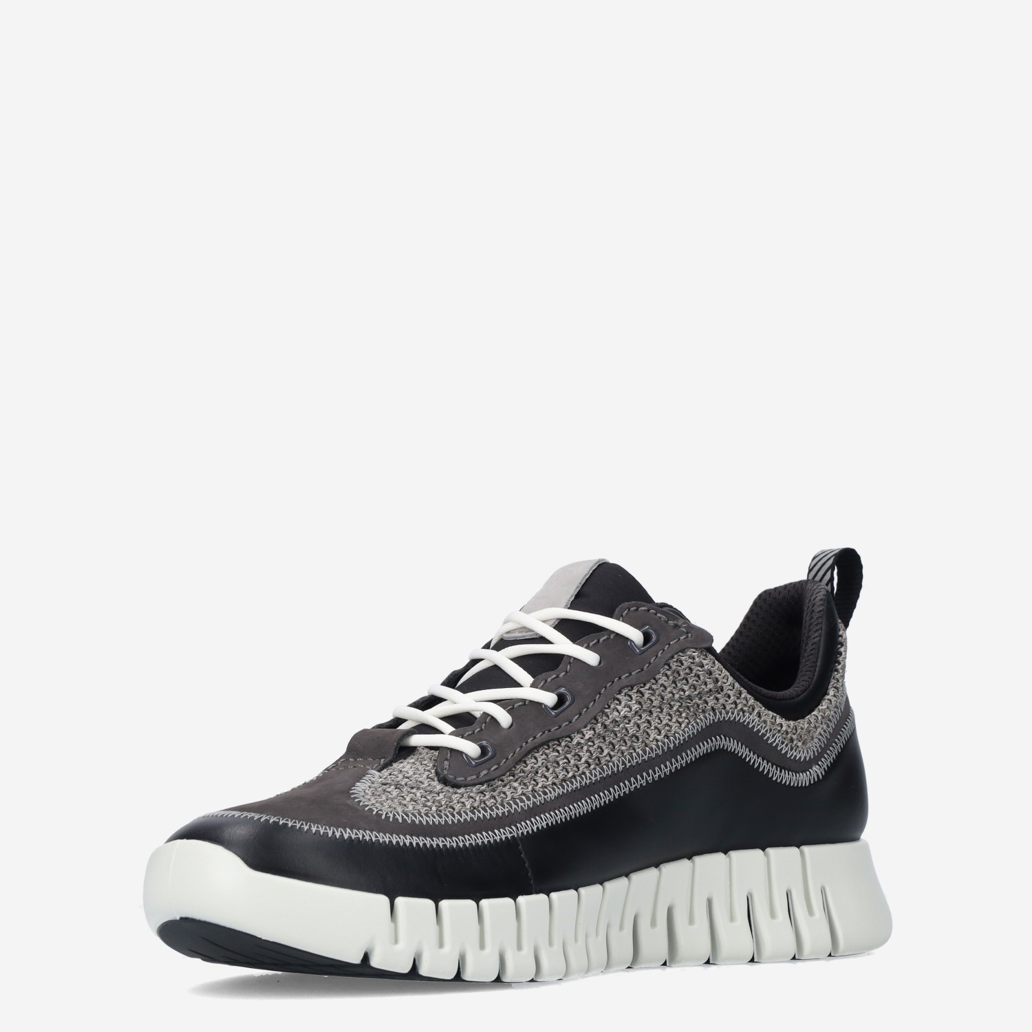 Deze zwarte Gruuv M herenschoen van ECCO is gemaakt van hoogwaardig textiel in combinatie met synthetische materialen. De sneaker is voorzien van een comfortabele loopzool en gebreid bovenwerk.
