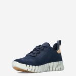 Deze donker blauwe Gruuv W Marine damesschoen van ECCO is gemaakt van hoogwaardig leer in combinatie met textiel en synthetische materialen. De sneaker is voorzien van een comfortabele en sportieve loopzool.
