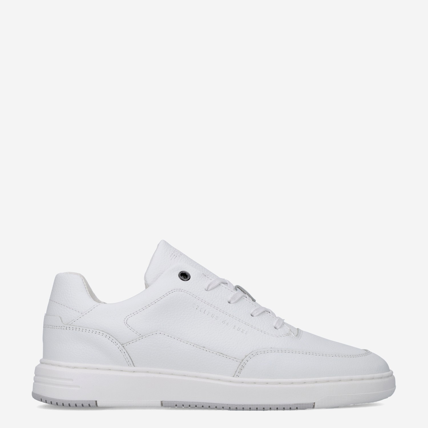 Deze witte Hospital Bomb herensneaker van Cycleur de Luxe is gemaakt van verschillende leersoorten.