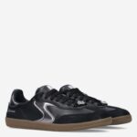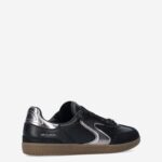 Deze zwarte Hotshot damessneaker van Skechers is gemaakt van imitatieleer in combinatie met synthetische materialen. Deze sportief lage sneaker is voorzien van metallic accenten.