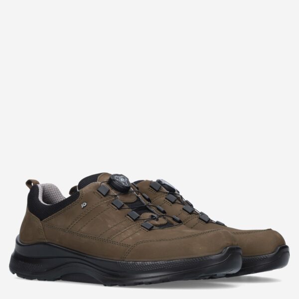 Deze donker groen bruine Hunter herenschoen van Jomos is gemaakt van leer in combinatie met synthetische materialen. De schoen is voorzien van een sluiting met draaiknop voor een gemakkelijke in- en uitstap.