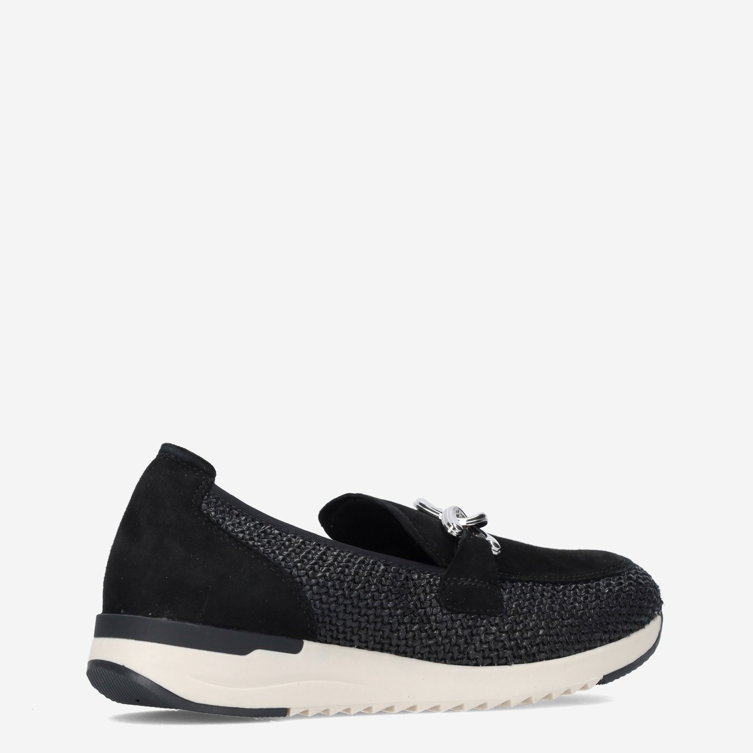 Deze zwarte instapper van Caprice is gemaakt van leer in combinatie met synthetische materialen. De trendy instapper heeft een sportieve loopzool voor optimaal loopcomfort.