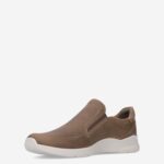 Deze bruine ECCO hereninstapper is gemaakt nubuck in combinatie met synthetisch materiaal. Draag deze instapper met een jeans.