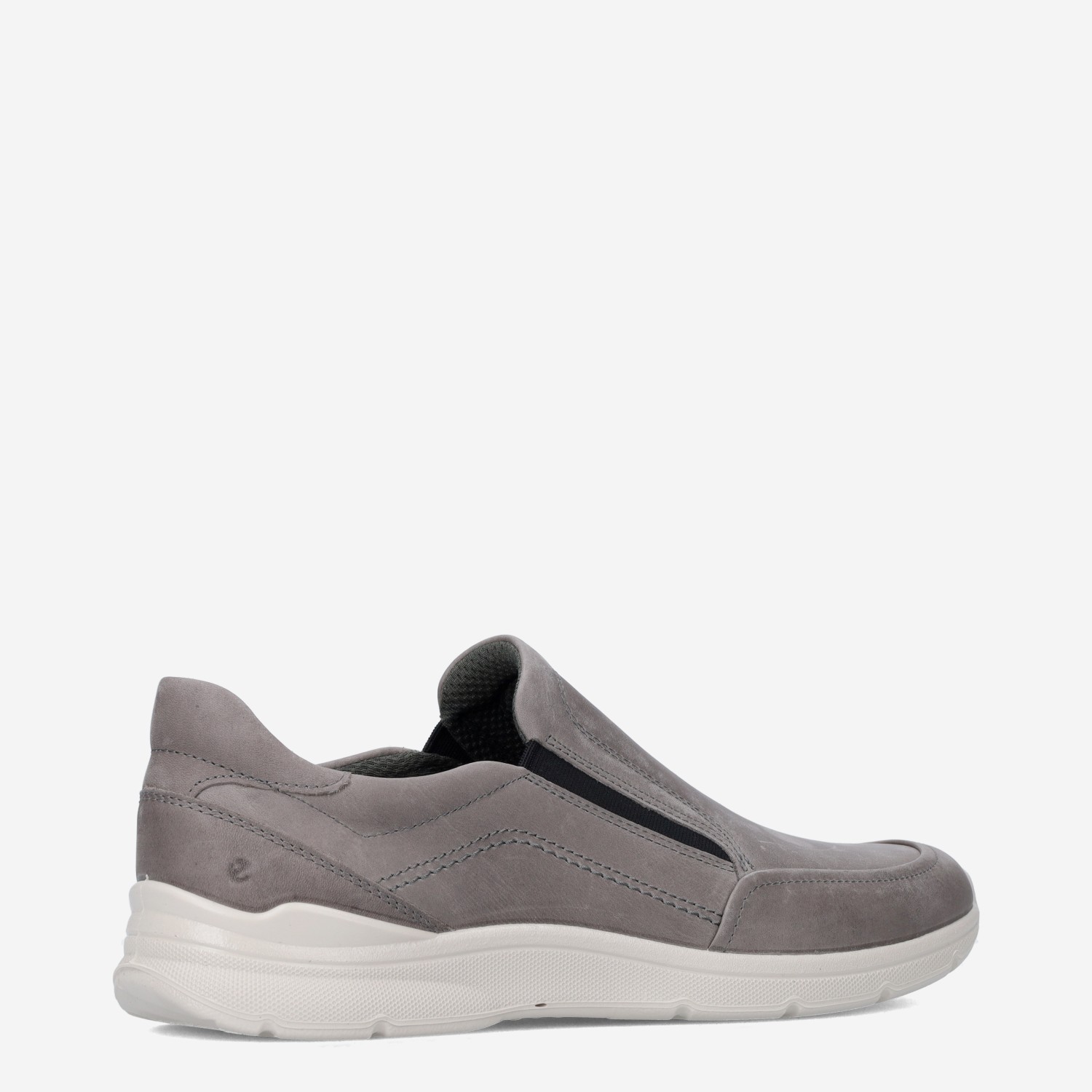 Deze grijze ECCO Irving hereninstapper is gemaakt van Nubuck in combinatie met synthetische materiaal. Deze instapper kun je goed combineren met een jeans.