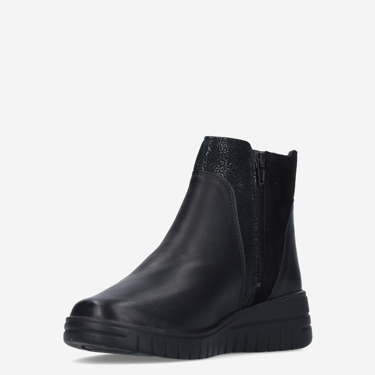 Deze zwarte Isla Mid damesschoen van Aco is gemaakt van leer in combinatie met synthetische materialen. De hoge sneaker is voorzien van een ritssluiting voor een gemakkelijke instap en heeft een licht verhoogde hiel.