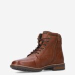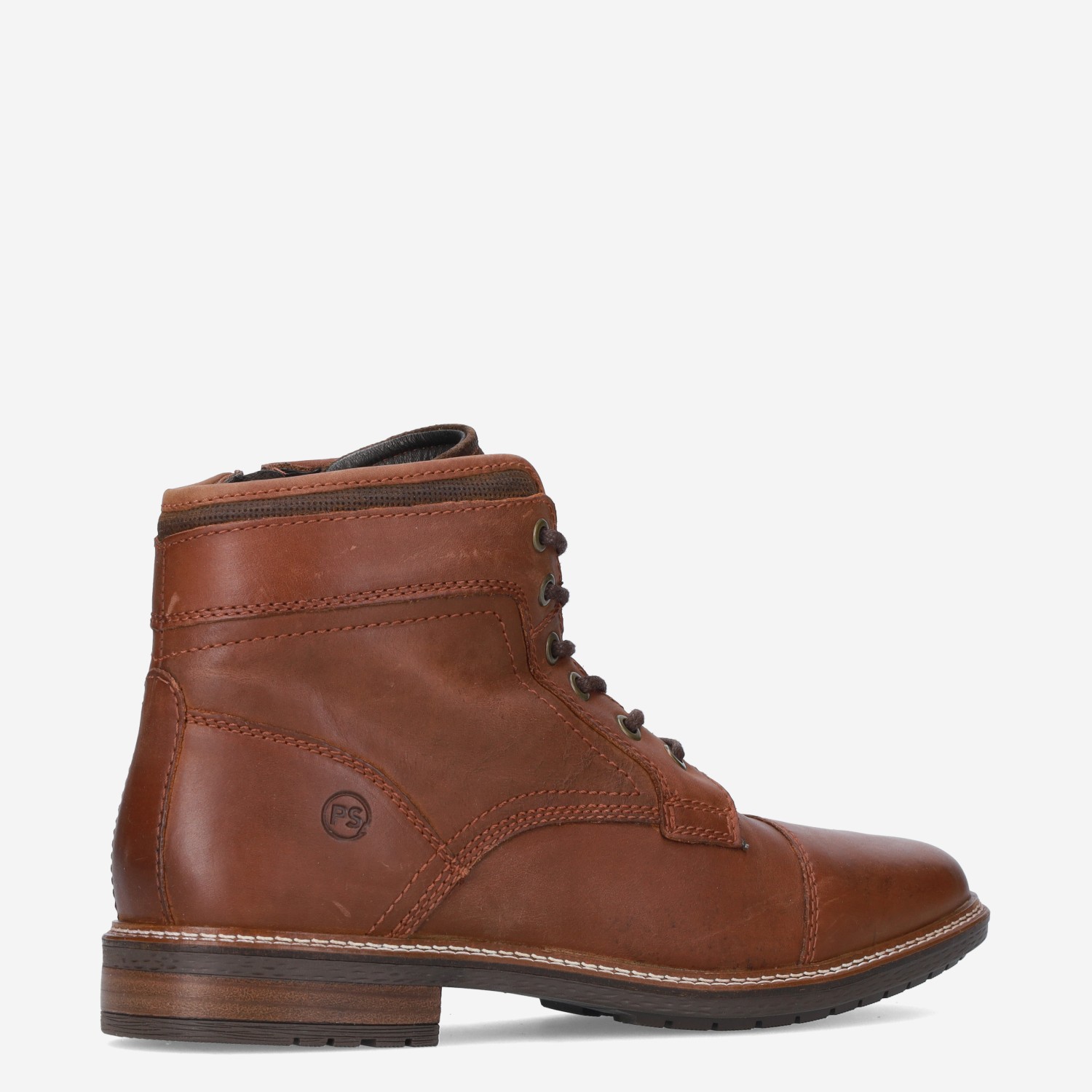 Deze bruine, cognac gekleurde Joni herenschoen van Poelman is gemaakt van leer in combinatie met textiel. De veterschoen is stijlvol afgewerkt.