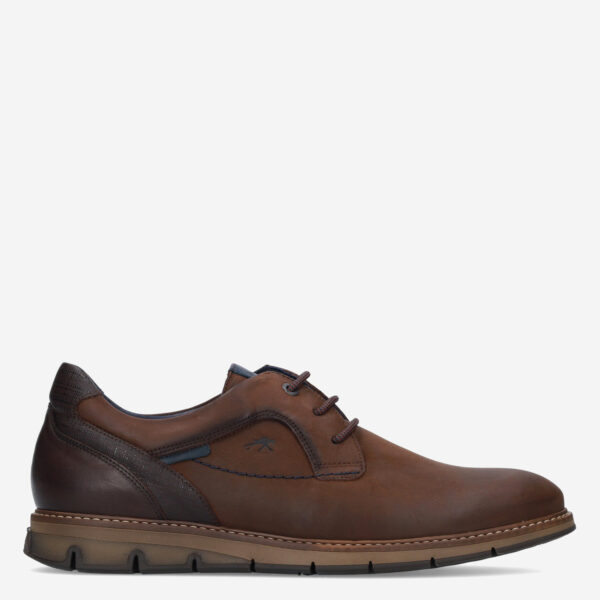 Deze donker bruine Kansas herenschoen van Fluchos is gemaakt van hoogwaardig leer in combinatie met textiel. De nette veterschoen heeft een gegomde zool.