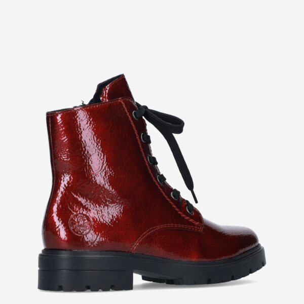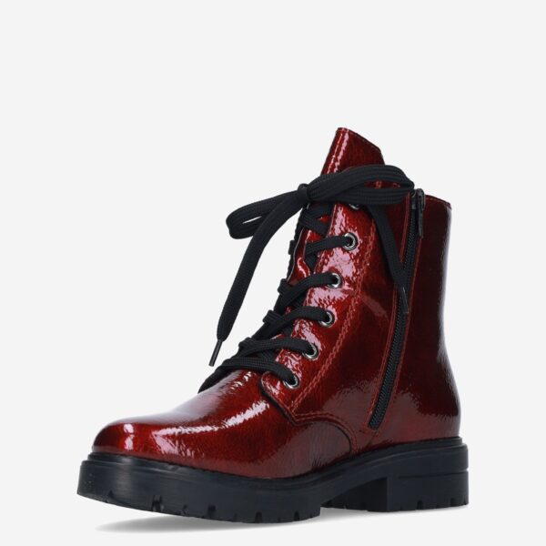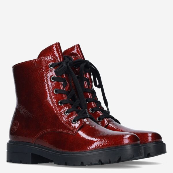 Deze rode Lagro damesboot van Rieker is gemaakt van imitatieleer in combinatie met synthetische materialen. De boot is voorzien van zowel een rits- als vetersluiting voor een gemakkelijke instap en heeft een fake fur binnenvoering.