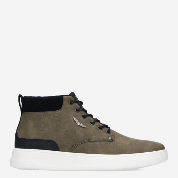 Deze groene Lexing-T hoge herensneaker van PME Legend is gemaakt van leer in combinatie met synthetische materialen.