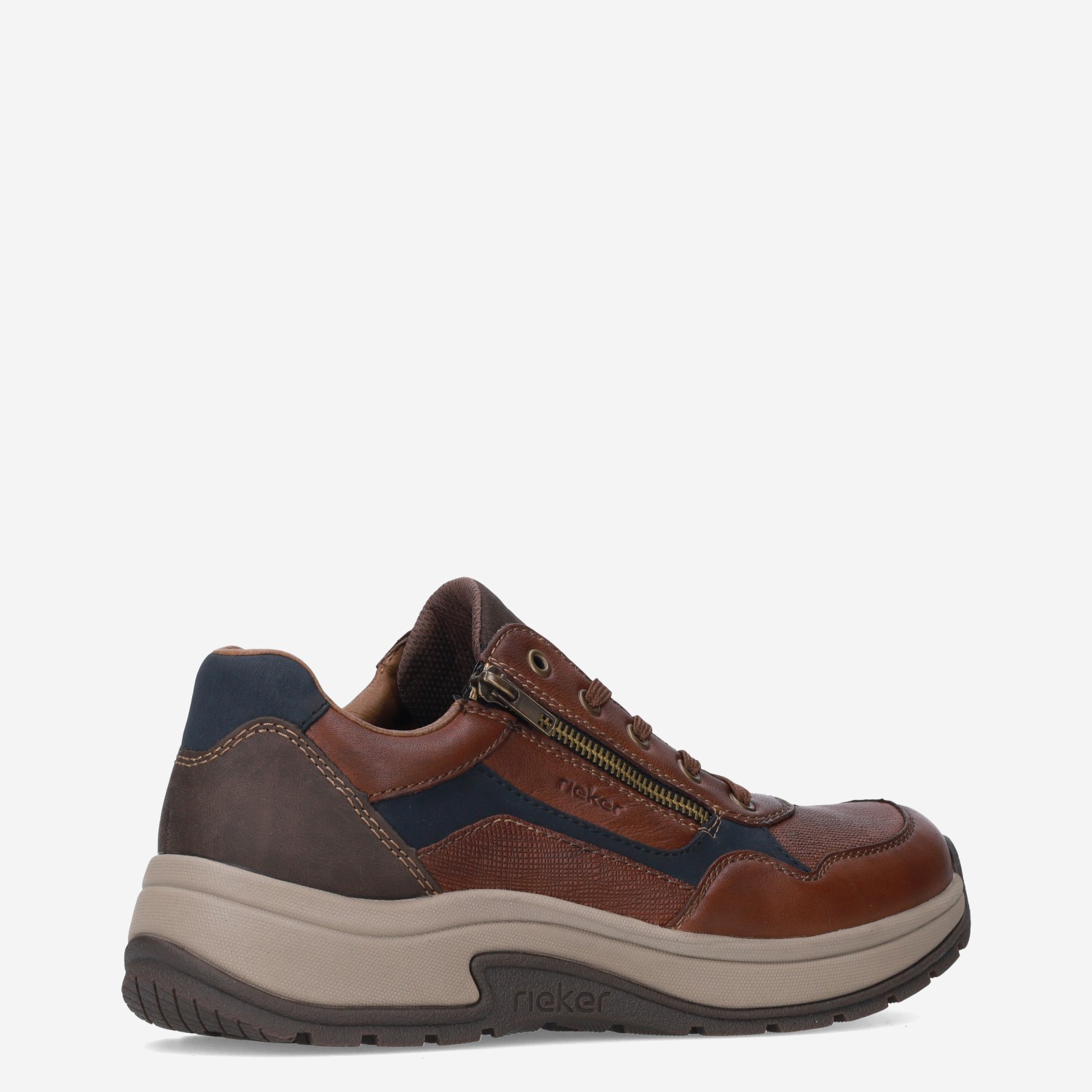 Deze bruine Lugano herensneaker van Rieker is gemaakt van leer in combinatie met synthetische materialen. De sneaker is voorzien van zowel een rits- als vetersluiting voor een gemakkelijke instap.