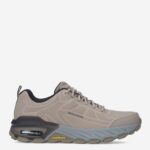 Deze beige, grijze Max Protect herensneaker van Skechers is gemaakt van imitatieleer in combinatie met textiel en synthetische materialen. De sportieve sneaker is voorzien van een gemakkelijke instap en stevige loopzool.