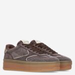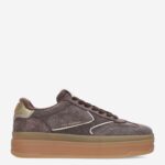 Deze bruine Minny damessneaker van Scotch & Soda is gemaakt van leer in combinatie met textiel en synthetische materialen. De sneaker is voorzien van gouden accenten en heeft een dikke loopzool.