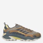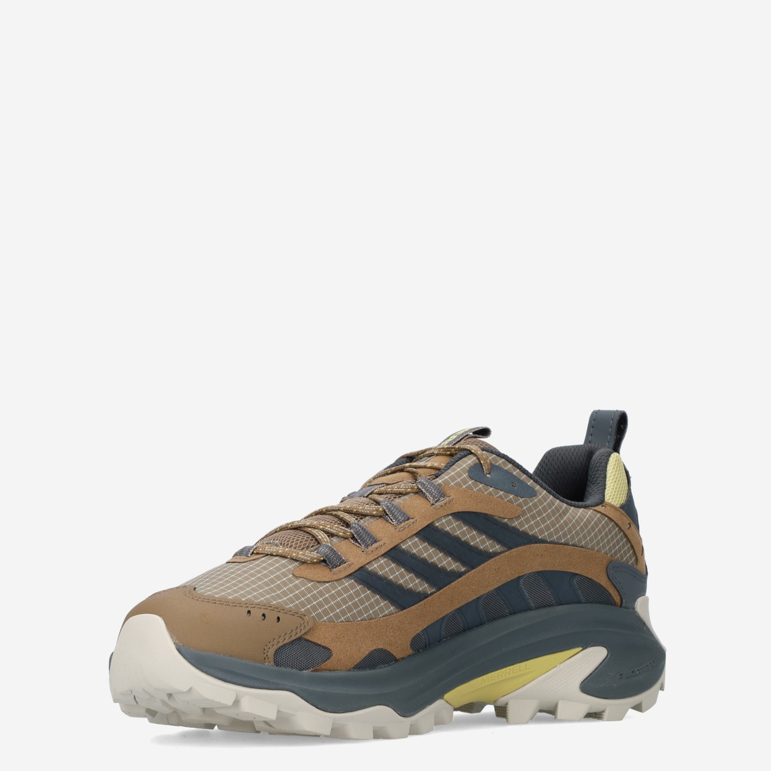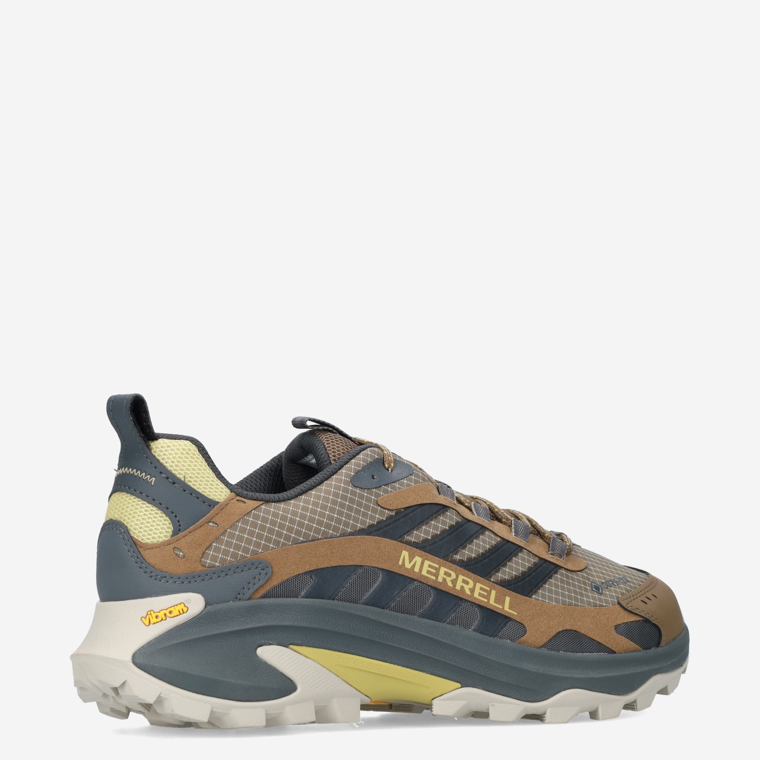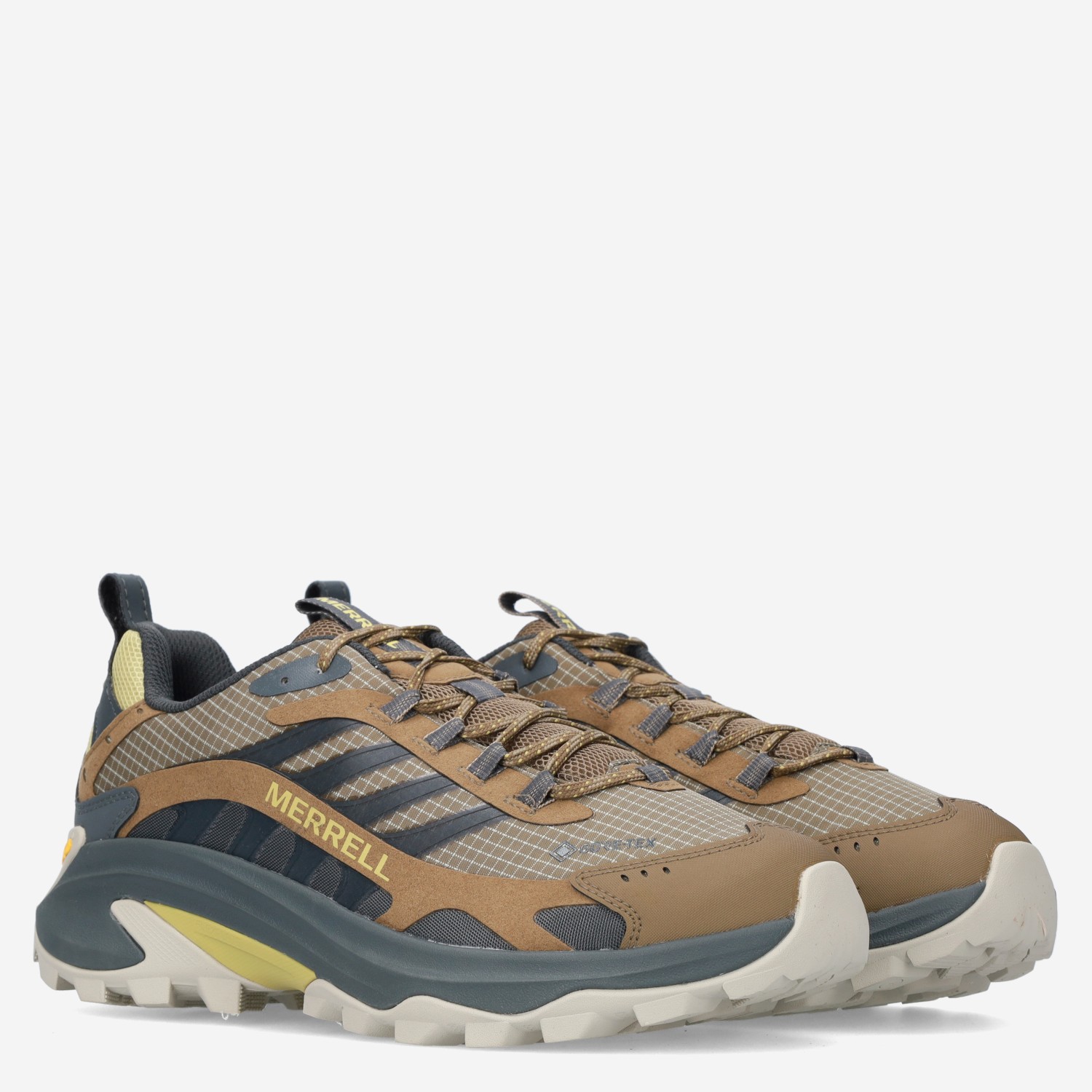 Deze bruine Moab Speed 2 herenschoen van Merrell is gemaakt van technisch textiel in combinatie met synthetische materialen. De wandelsneaker is voorzien van een waterproof Gore-Tex membraan en heeft een stevige Vibram zool voor voldoende grip en stabiliteit.