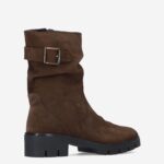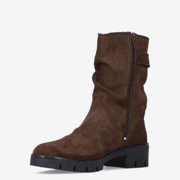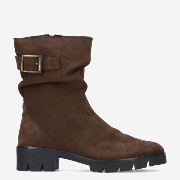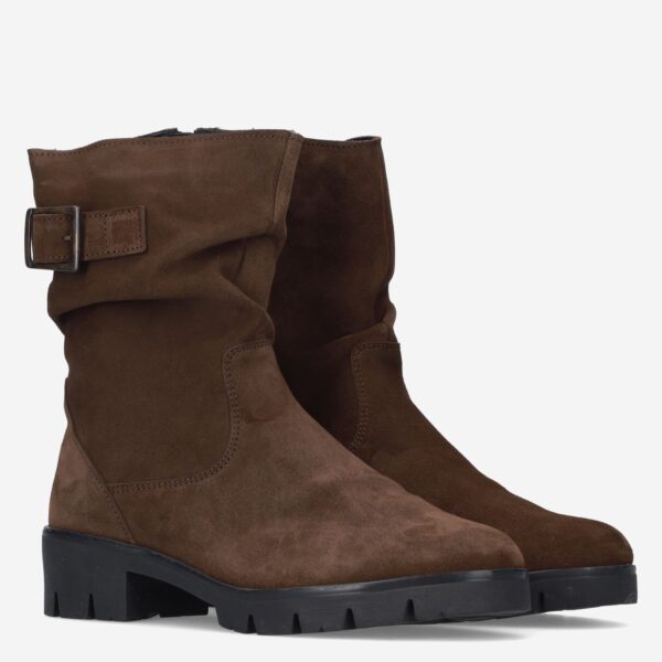 Deze donker bruine Molly damesboot van Aco is gemaakt van leer in combinatie met synthetische materialen. Het laarsje is voorzien van een ritssluiting voor een gemakkelijke instap, heeft een decoratieve gesp en een blokhakhoogte van ongeveer 4 centimeter.