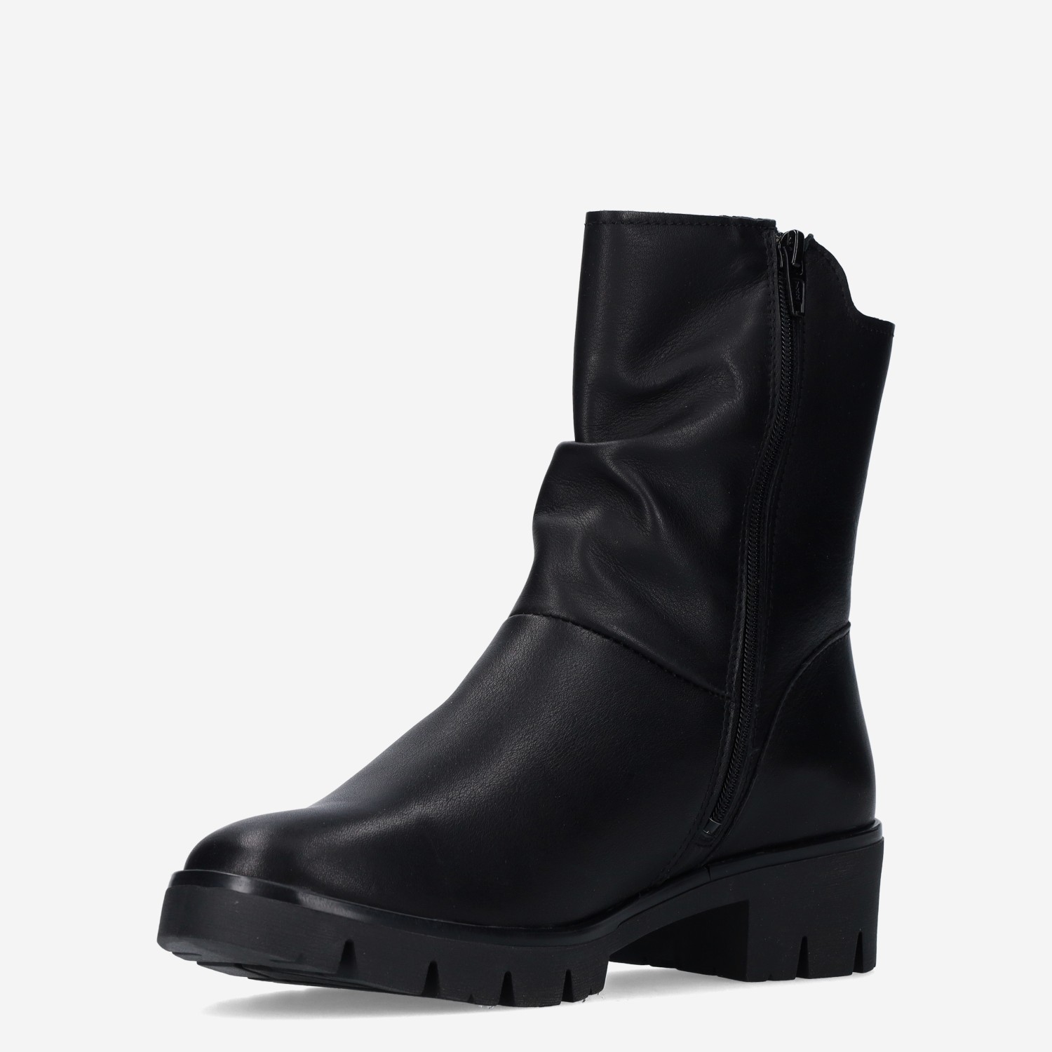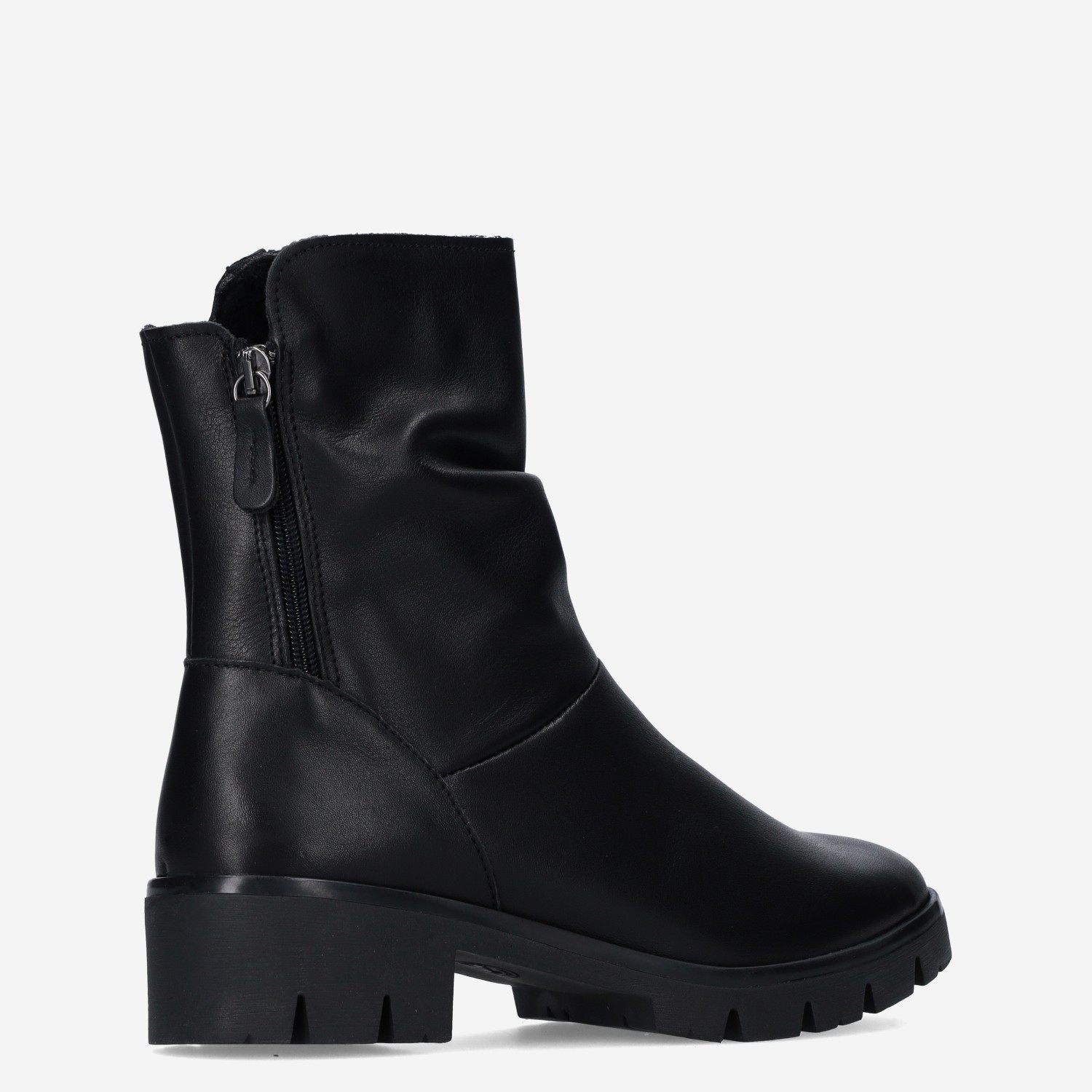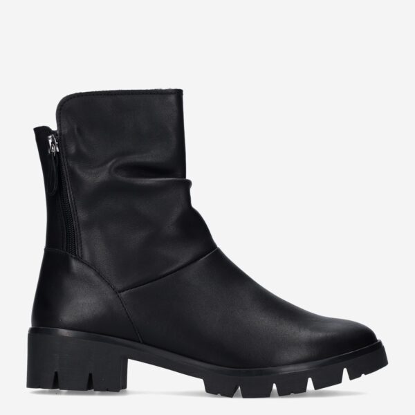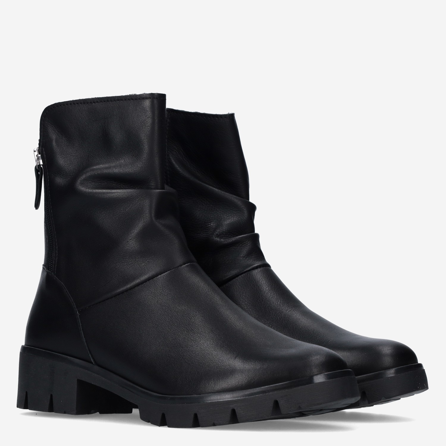 Deze zwarte Molly damesboot van Aco is gemaakt van leer in combinatie met synthetische materialen. Het laarsje is voorzien van twee ritssluitingen voor een gemakkelijke instap en heeft een blokhakhoogte van ongeveer 4 centimeter.