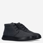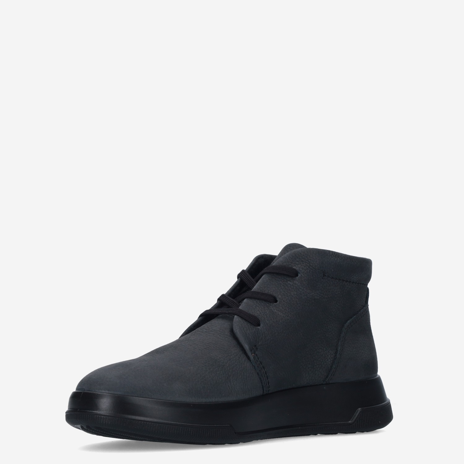 Deze zwarte Move W halfhoge damesschoen van ECCO is gemaakt van hoogwaardig leer in combinatie met textiel en synthetische materialen. De schoen is voorzien van een nette vetersluiting.