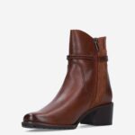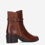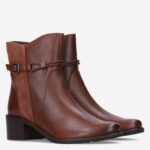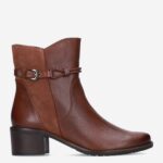 Deze cognac gekleurde Nappa damesboot van Caprice is gemaakt van leer en heeft een hakhoogte van ongeveer 4 centimeter. Het enkellaarsje is voorzien van een ritssluiting en decoratieve gespsluiting.