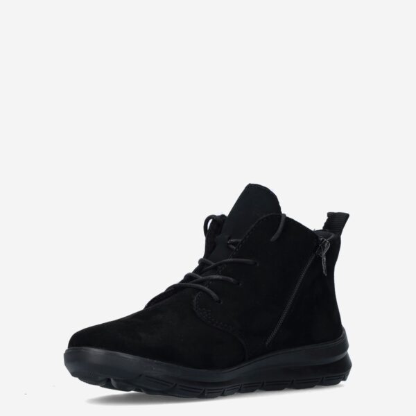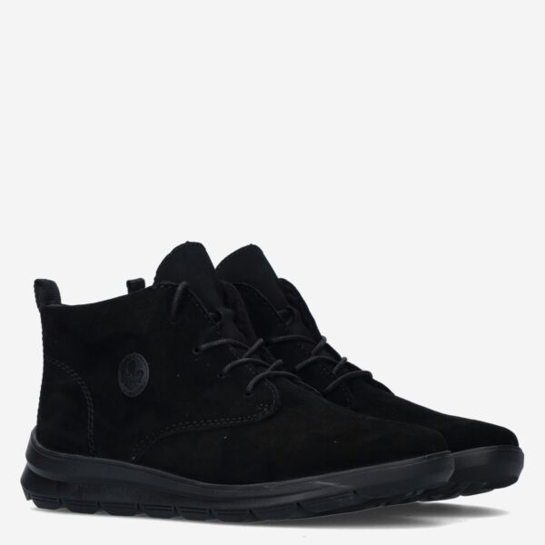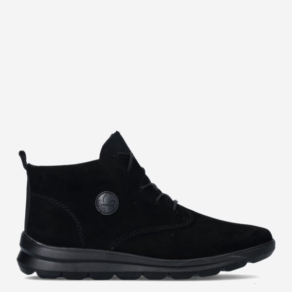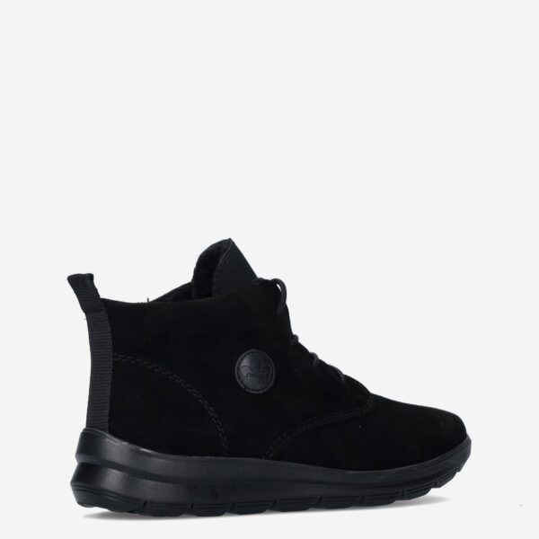 Deze zwarte Newa damesschoen van Rieker is gemaakt van leer in combinatie met synthetische materialen. De hoge sneaker is voorzien van zowel een rits- als vetersluiting voor een gemakkelijke instap.
