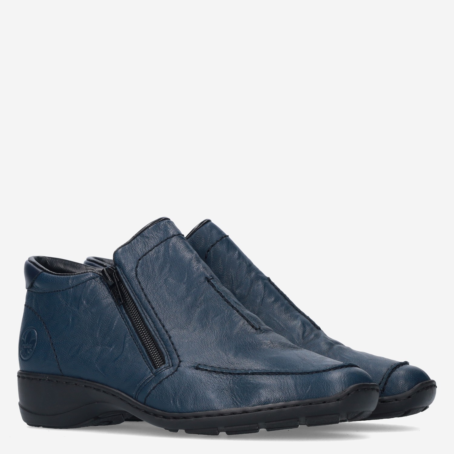 Deze blauwe Ottawa damesschoen van Rieker is gemaakt van leer en is voorzien van een dubbele ritssluiting voor een gemakkelijke instap. De nette schoen heeft wijdte F.