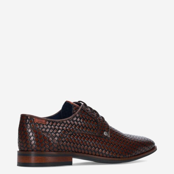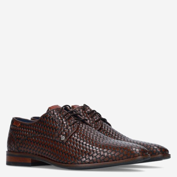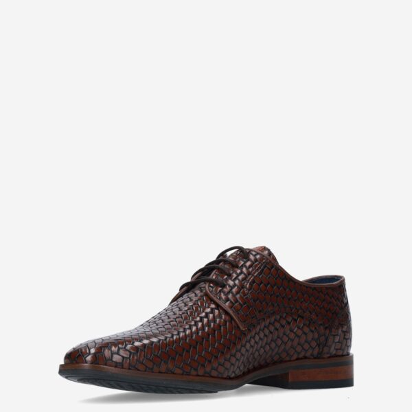 Deze donker bruine Oulton herenschoen van Berkelmans is gemaakt van leer. De nette schoen is voorzien van een reliรซfstructuur en heeft een lakleren-look.