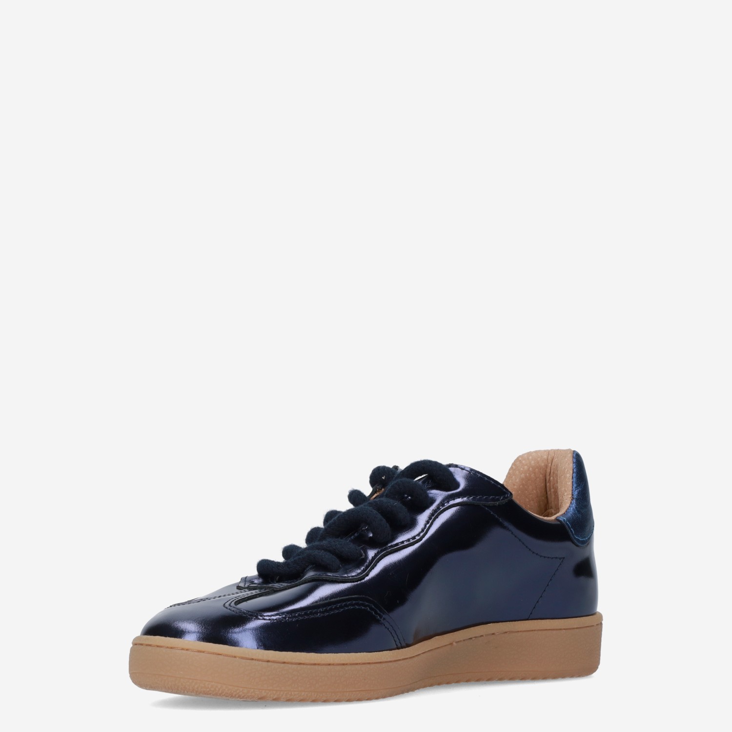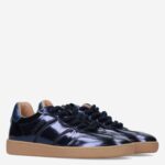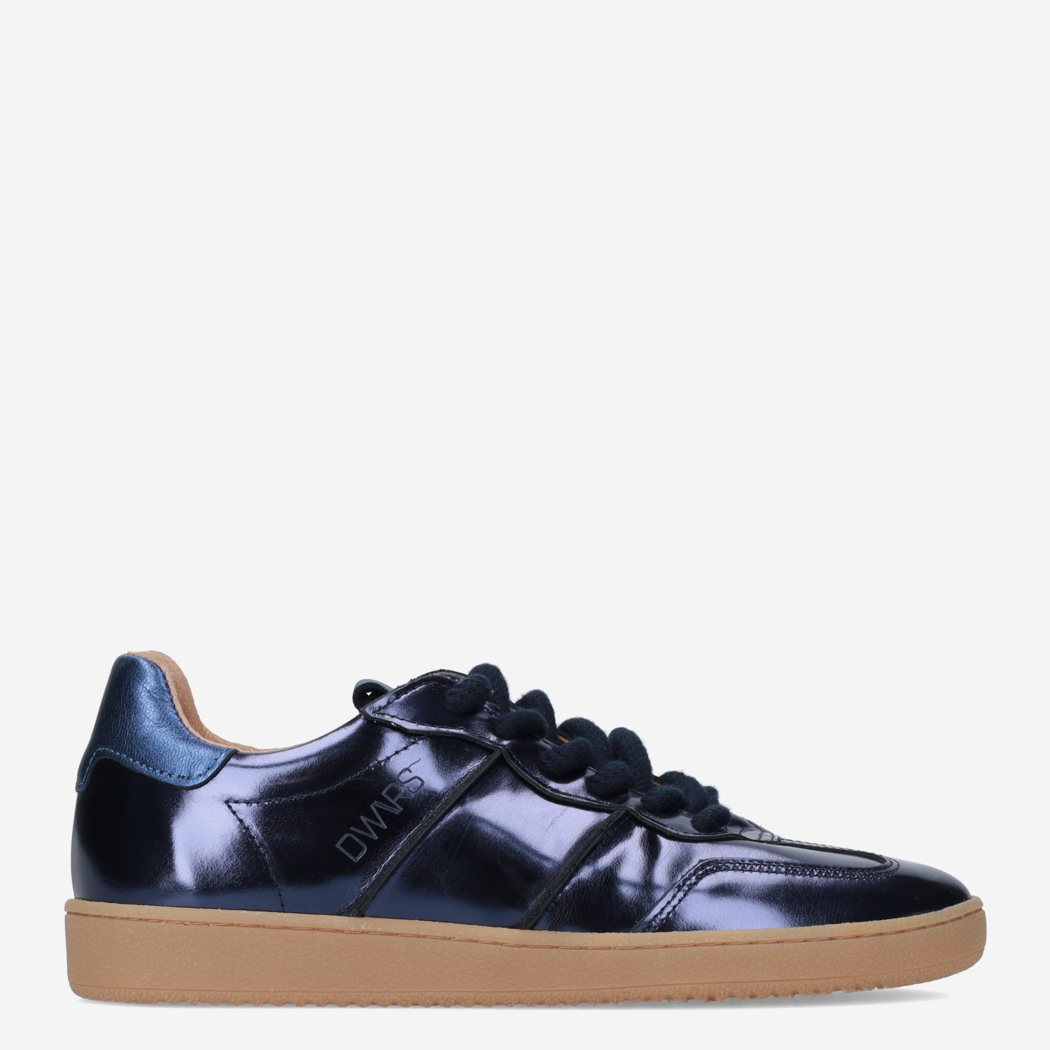 Deze blauwe metallic Poona damessneaker van DWRS is gemaakt van verschillende leersoorten in combinatie met synthetische materialen. De sneaker is voorzien van een lage sportieve zool en heeft dikke veters.