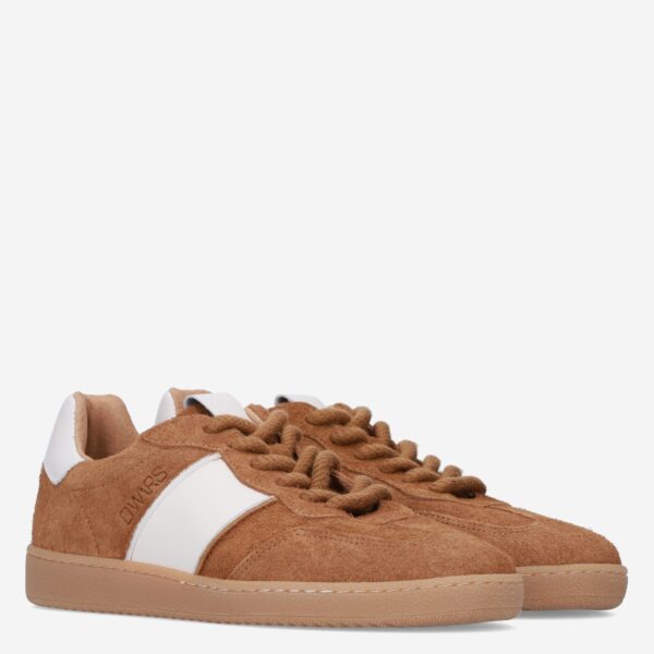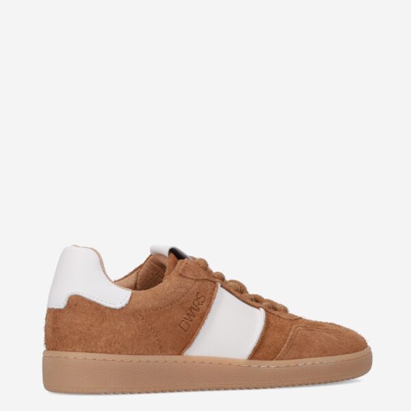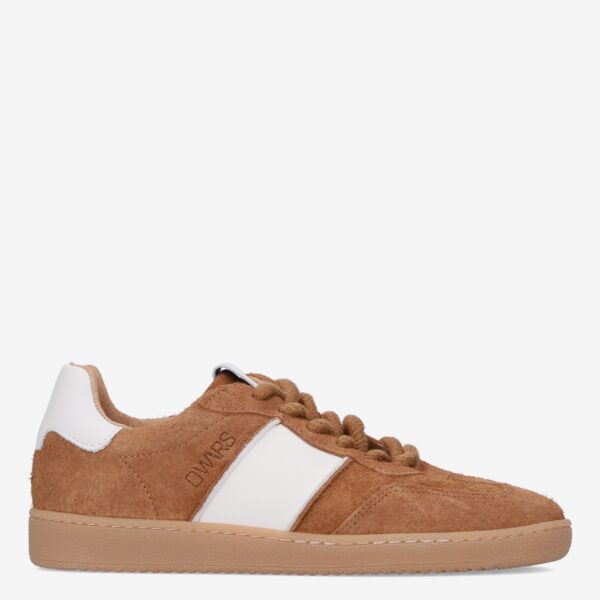 Deze bruine Poona damessneaker van DWRS is gemaakt van verschillende leersoorten in combinatie met synthetische materialen. De sneaker is voorzien van een lage sportieve zool en heeft witte accenten.