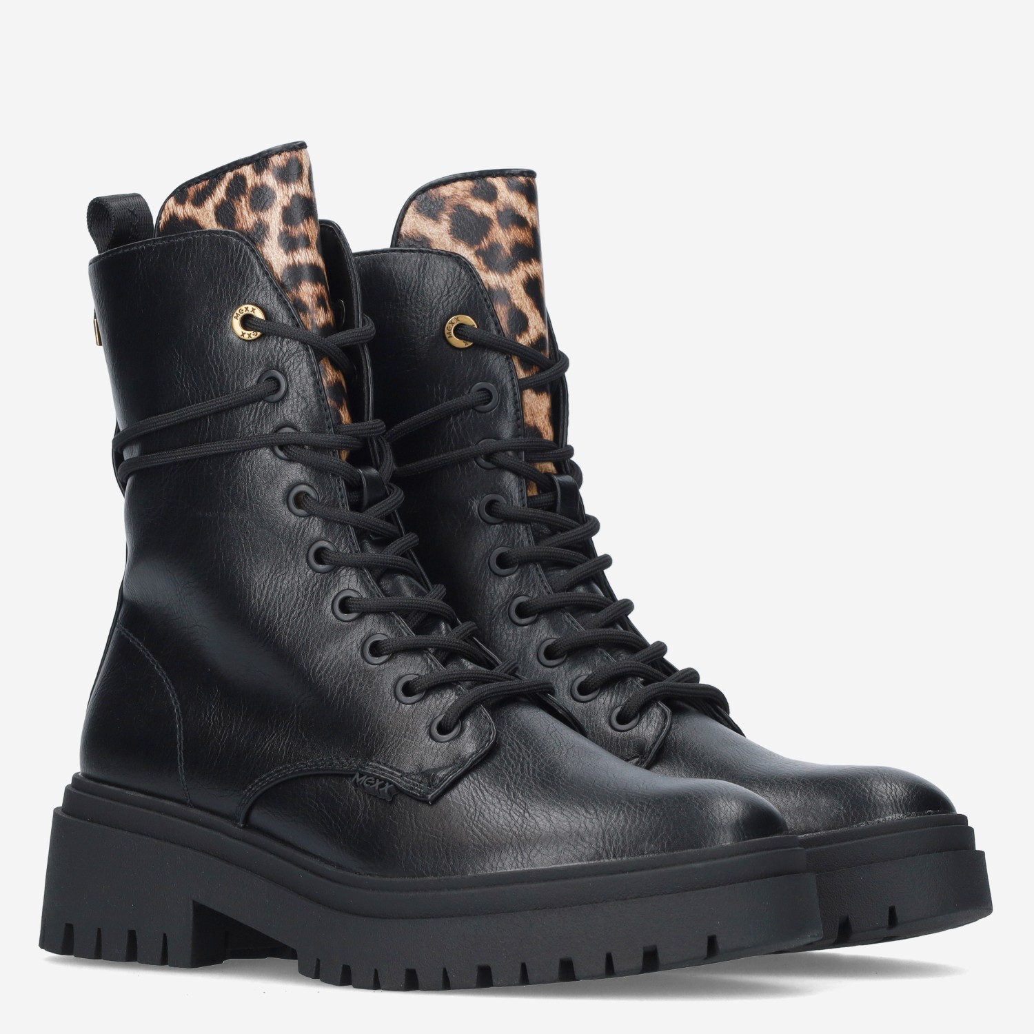 Deze zwarte Pretty Keto damesboot van Mexx is gemaakt van imitatieleer in combinatie met synthetische materialen. De hoge boot is voorzien van zowel een dubbele ritssluiting voor een gemakkelijke instap en heeft een panterprint design.