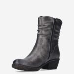 Deze zilveren Rangun Velvet damesboot van Rieker is gemaakt van imitatieleer in combinatie met textiel en synthetische materialen. De boot is voorzien van een ritssluiting voor een gemakkelijke instap en heeft een metallic print. De hakhoogte van het enkellaarsje is ongeveer 3 centimeter.