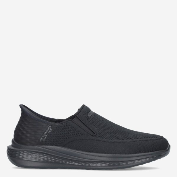 Deze zwarte Relaced k Slip-In hereninstapper van Skechers is gemaakt van technisch textiel in combinatie met synthetische materialen. De Slip-In is voorzien van een lichtgewicht loopzool en heeft een comfortabele en gemakkelijke instap.