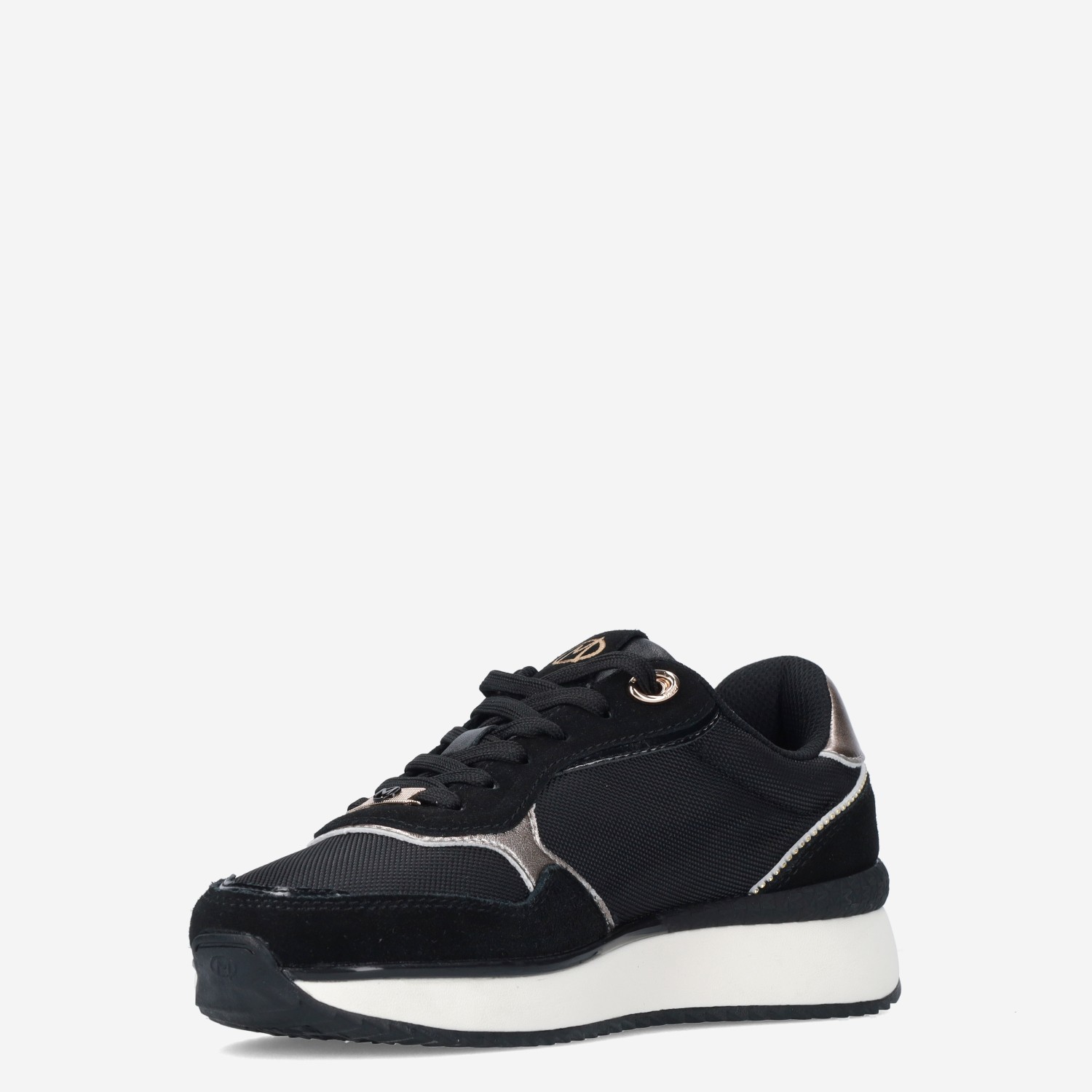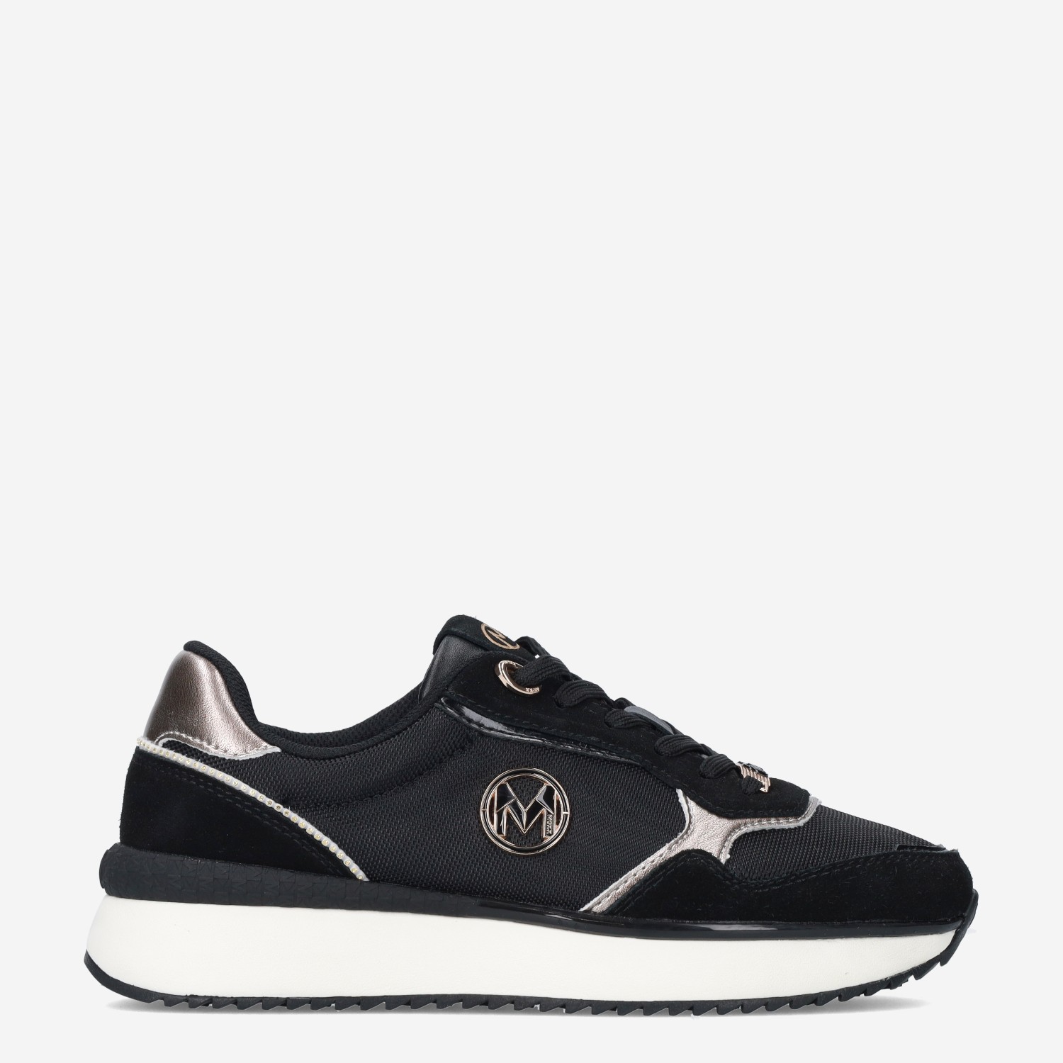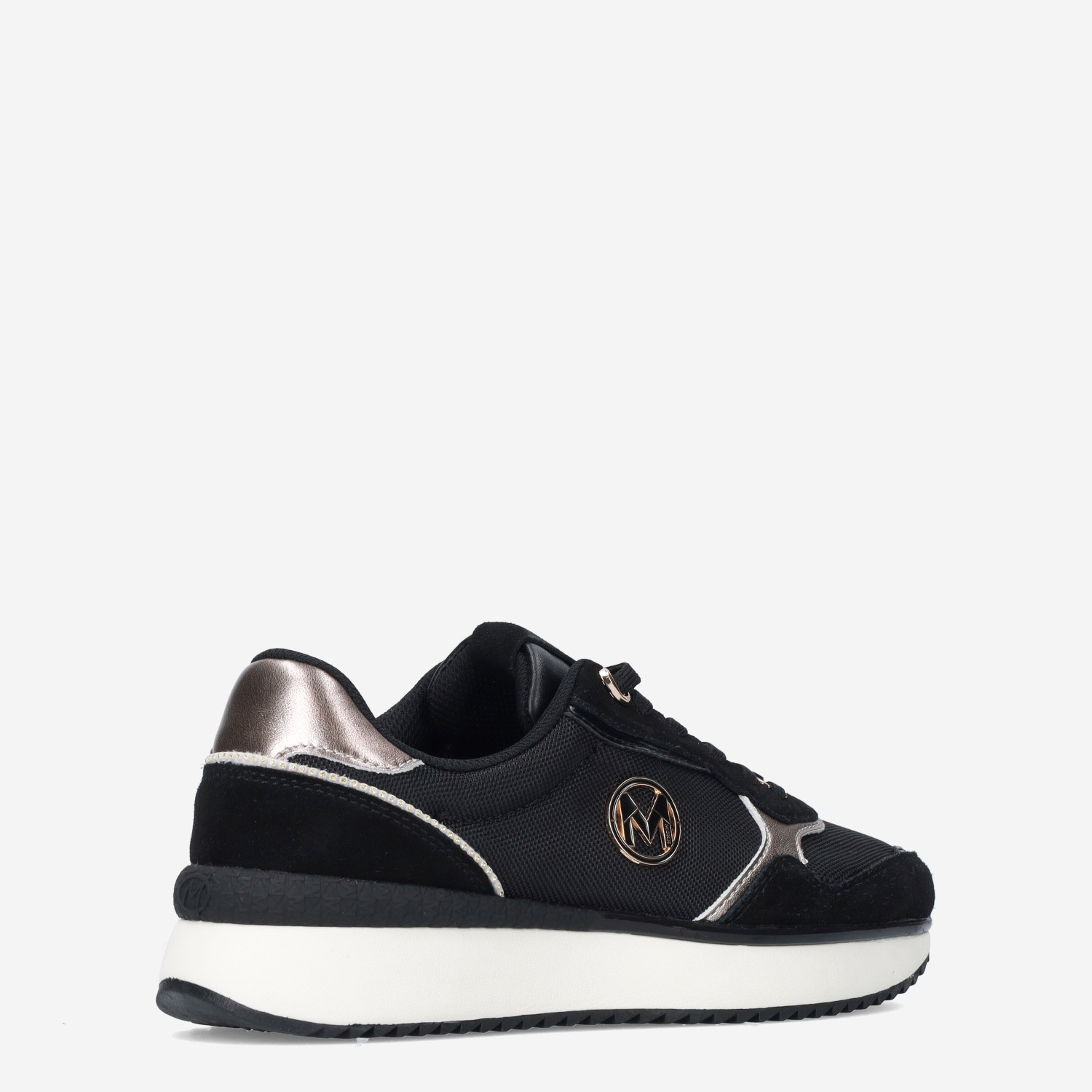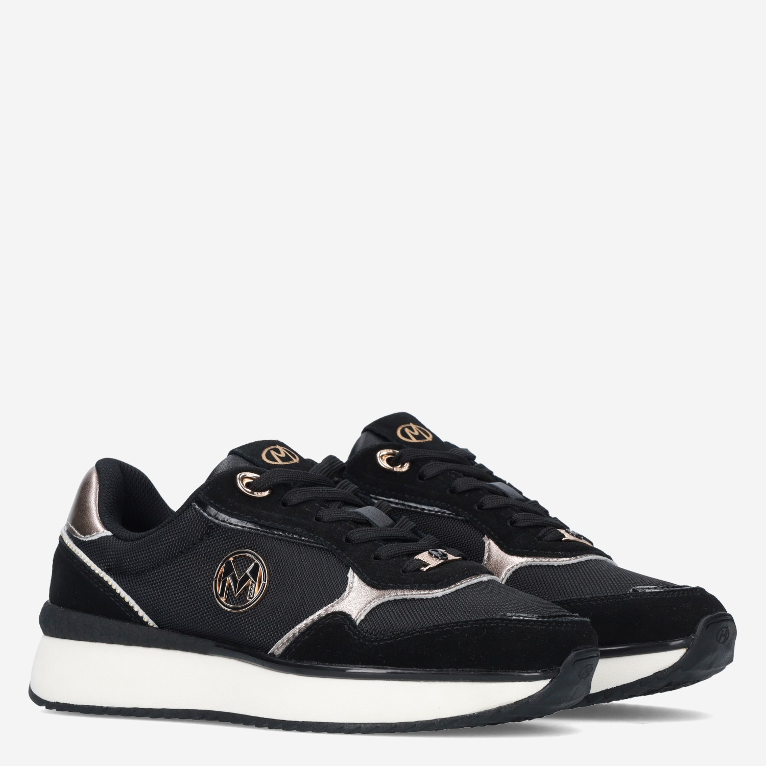Deze zwarte Romance Pipa damessneaker van Mexx is gemaakt van imitatieleer in combinatie met metallic accenten.